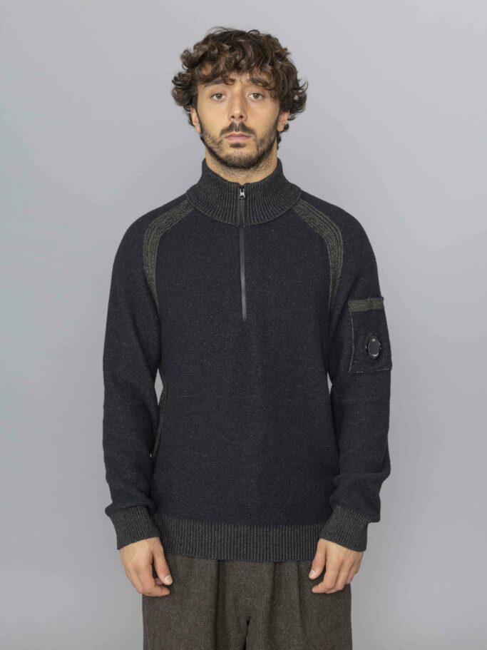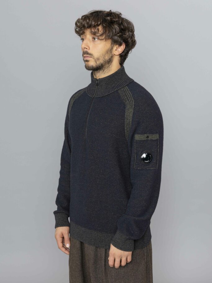 Fleece Knit Polo Collar Lens Sweater Capers