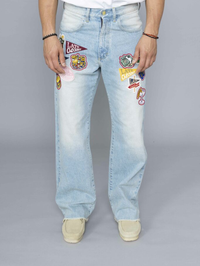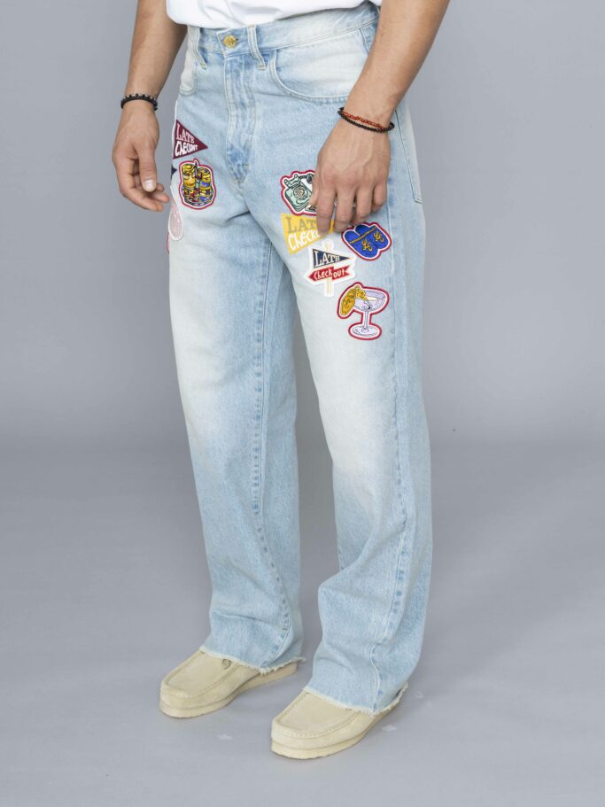 Light Blue Raw Edge Patched Jeans