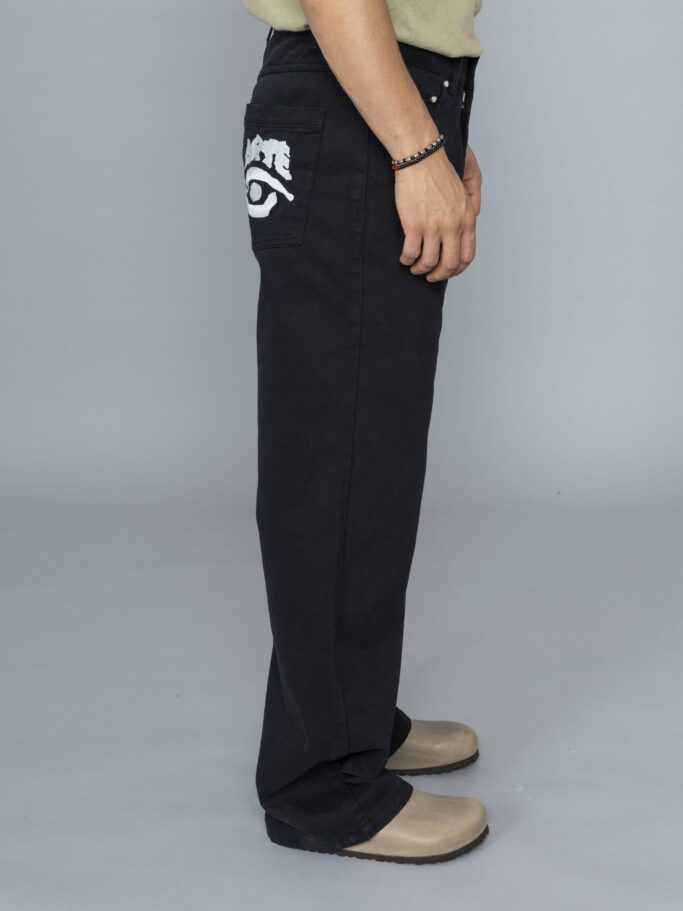 Back Pocket Graphic Pants Black