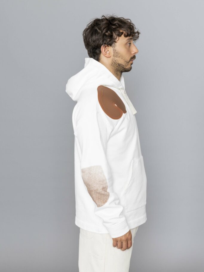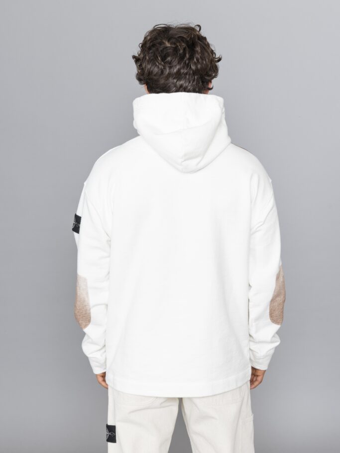 Knit-Lock Cotton Raw Beauty Hooded Half-Zip Sweater Natural White