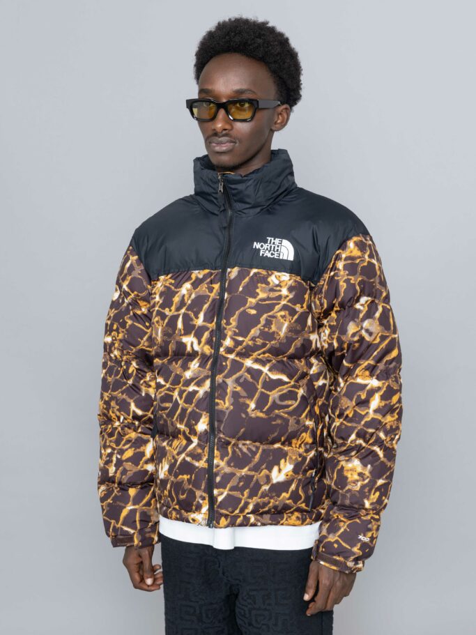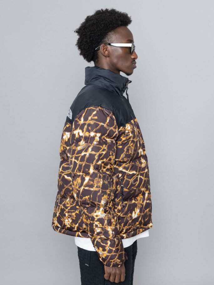 1996 Retro Nuptse Jacket Coal Brown Water Distortion Print