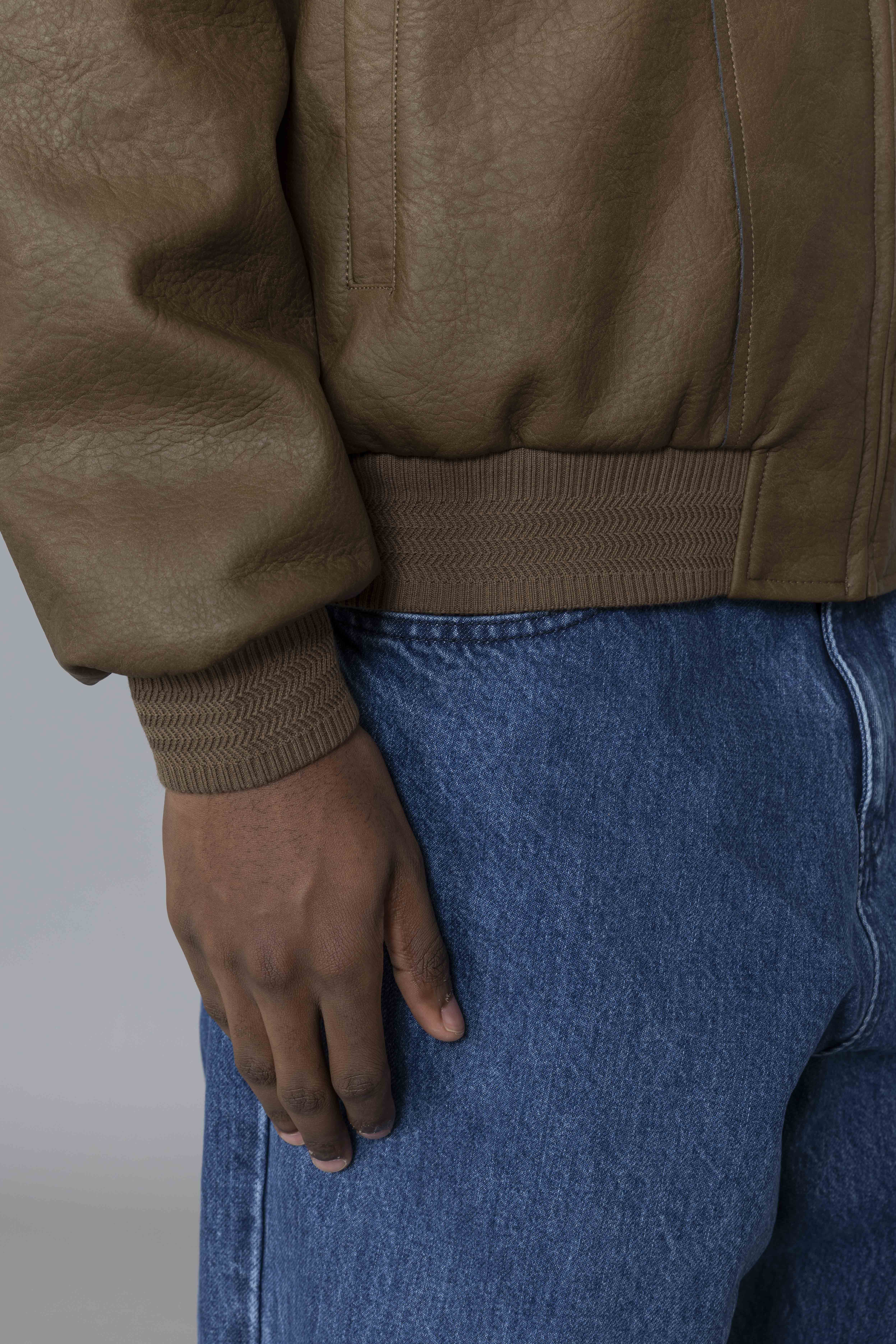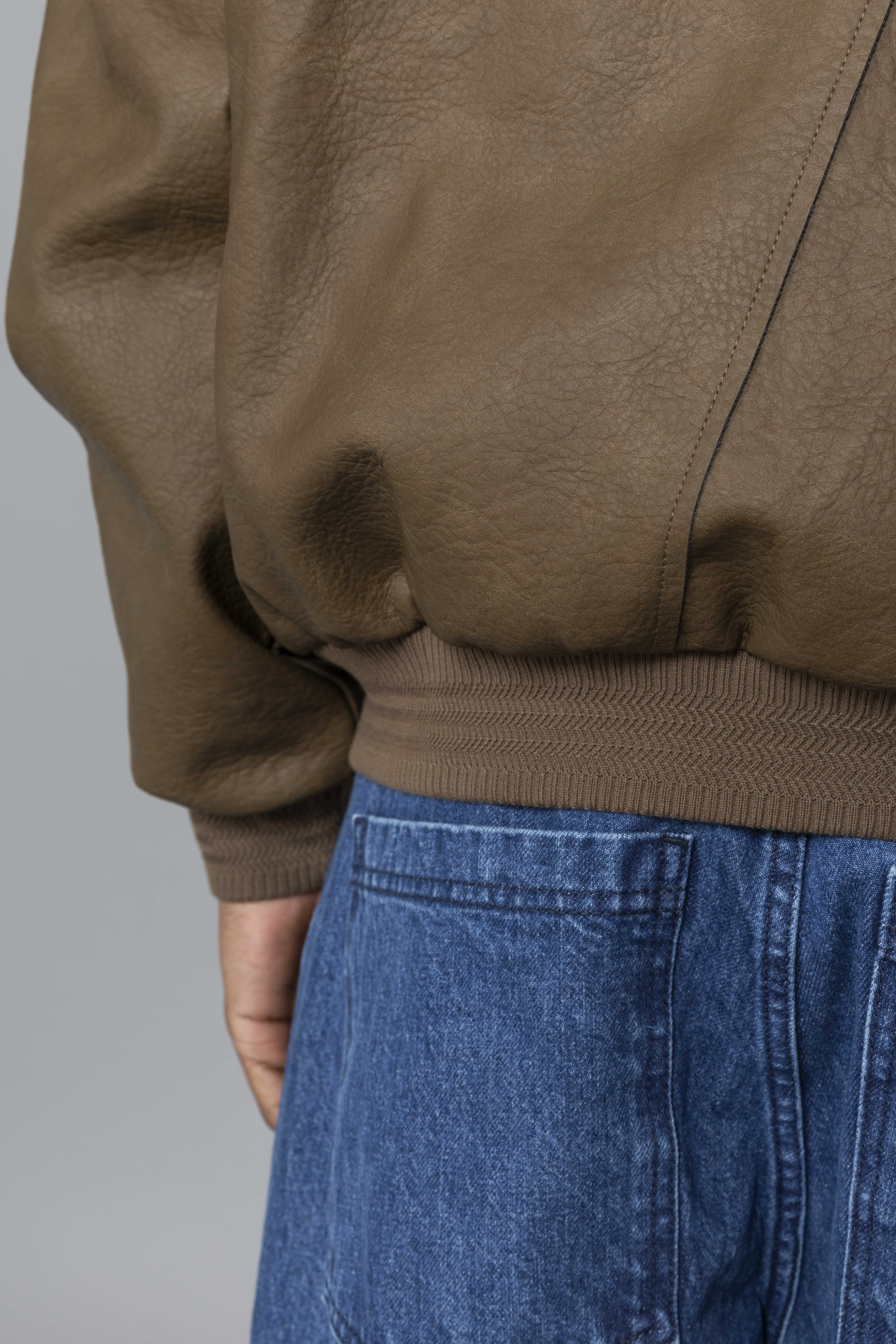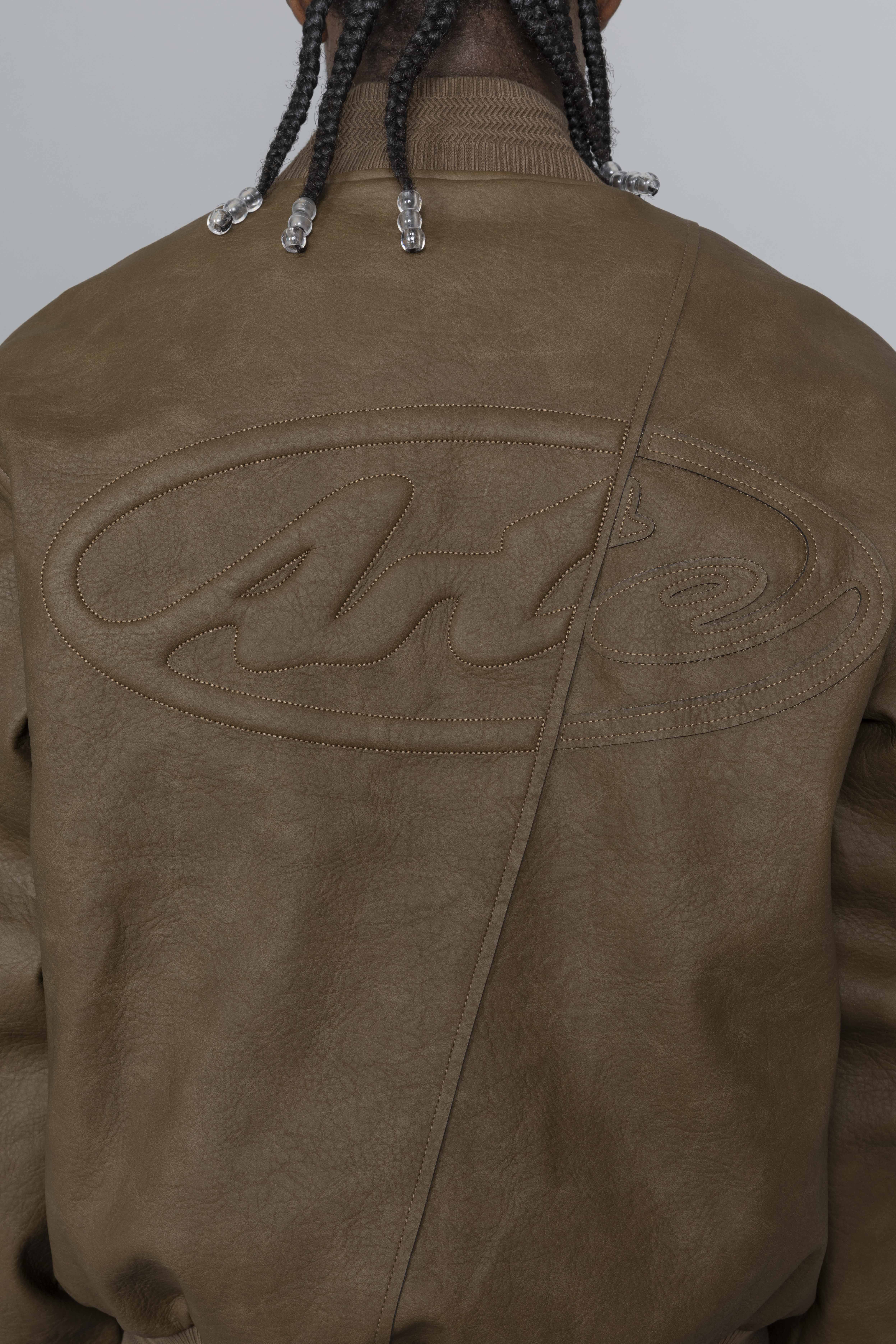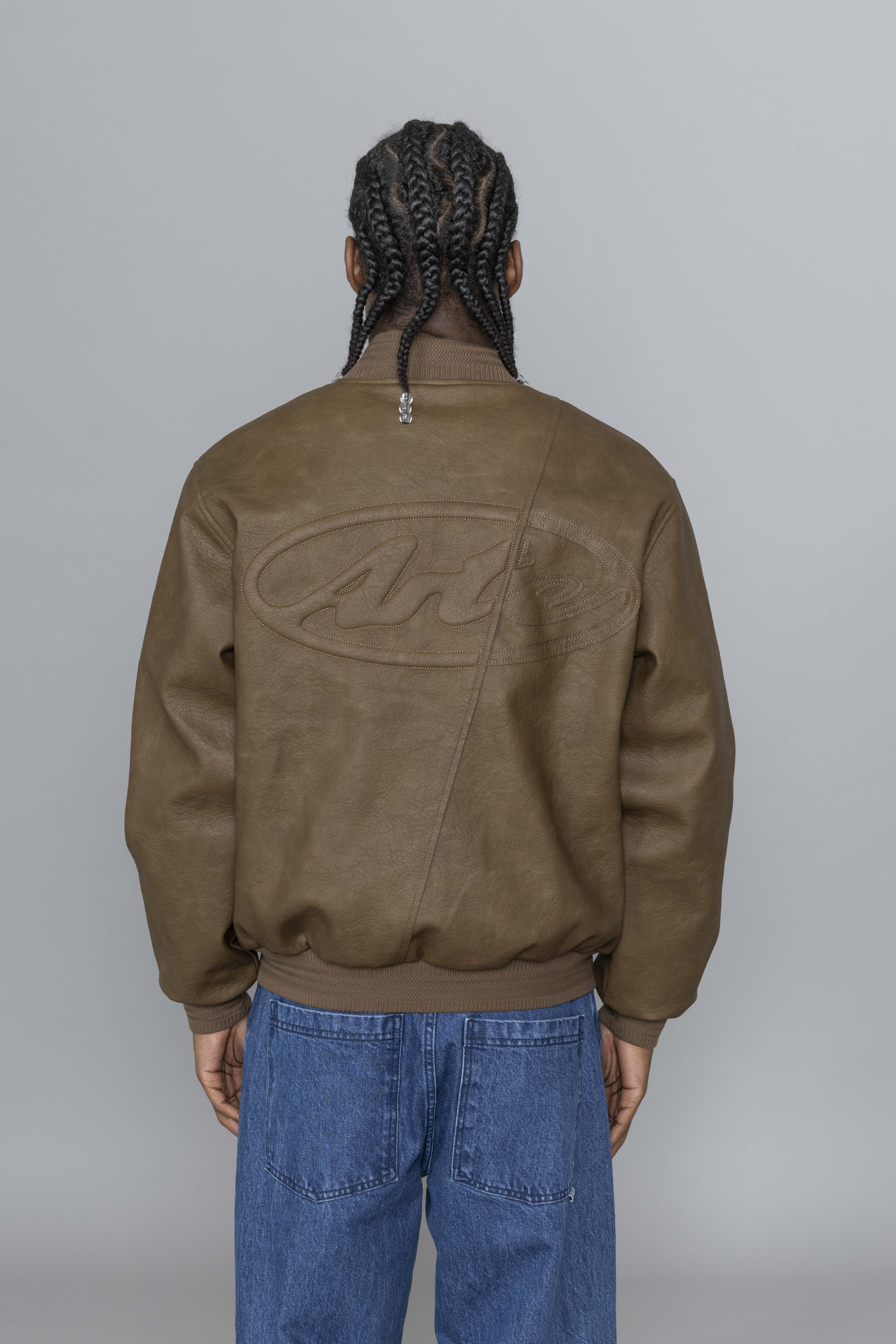 Leather Varsity Jacket Brown