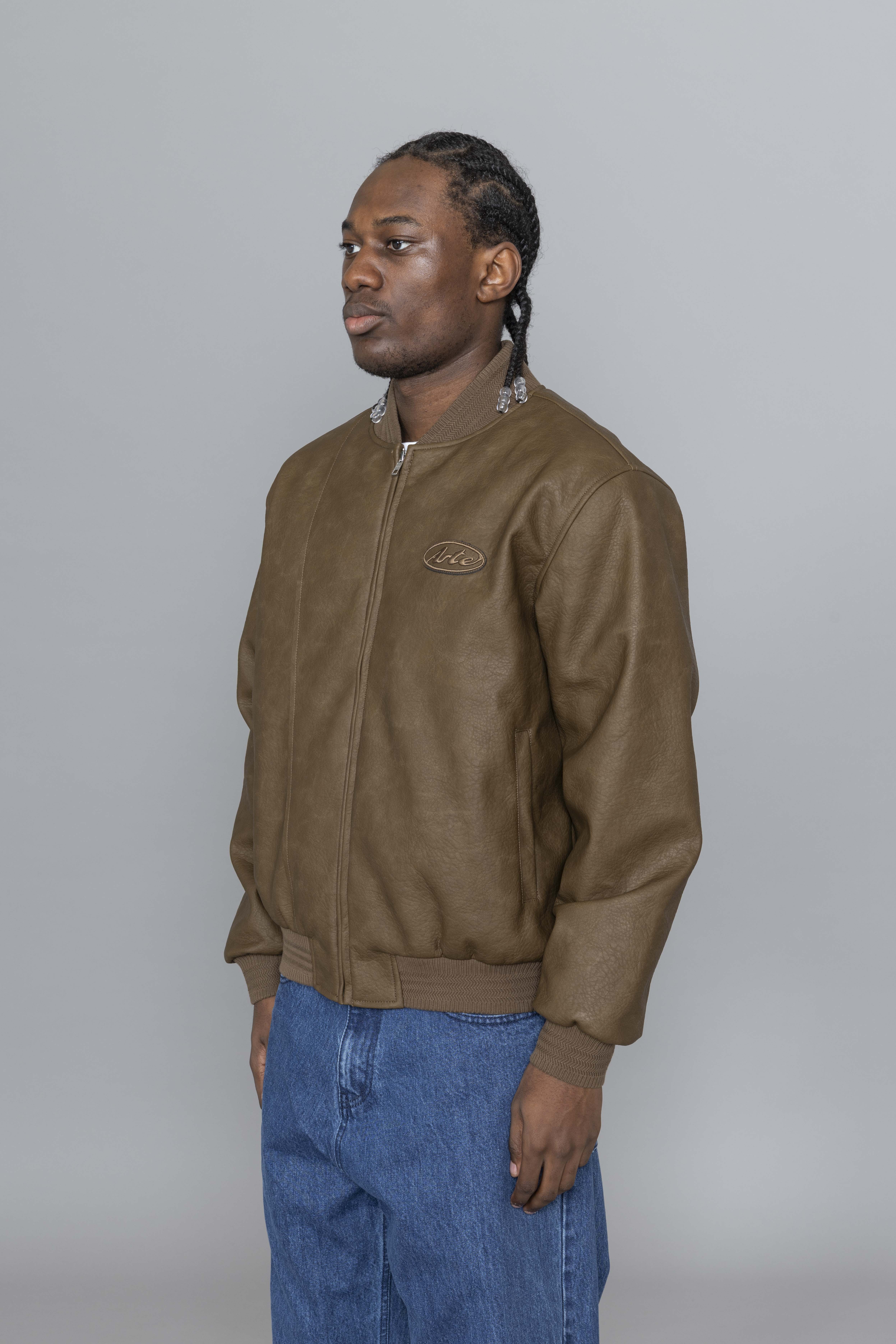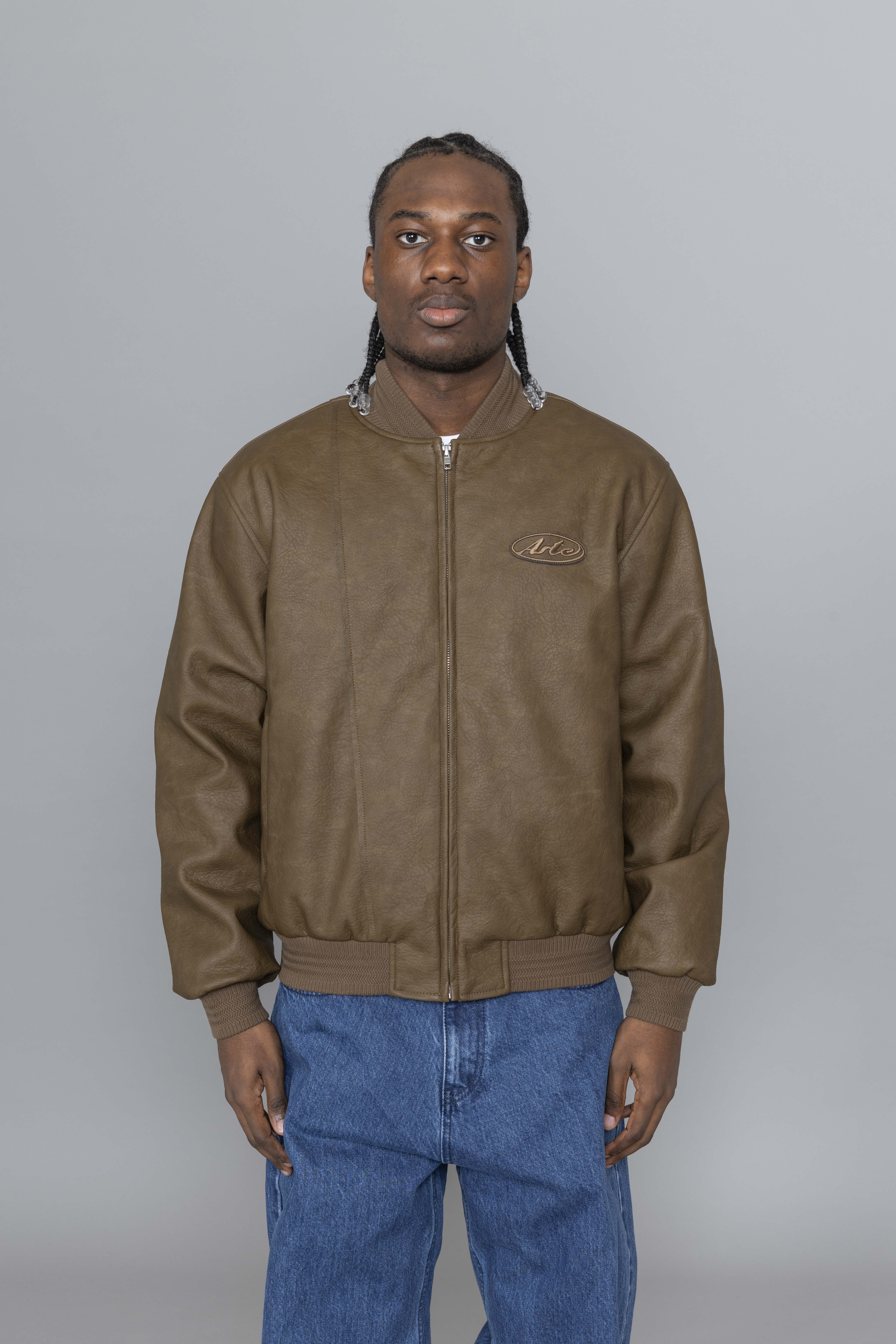 Arte Antwerp Leather Varsity Jacket Brown