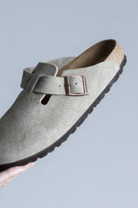 Birkenstock Boston BS Suede Leather Taupe are cut from split leather with napped finish, narrow fit. The Boston features a soft footbed with an integrated latex foam cushion for great comfort. The foot bed is made of “Cork” which is a natural sustainable material extracted from the cork oak and providing good insulation and a very good cushioning.