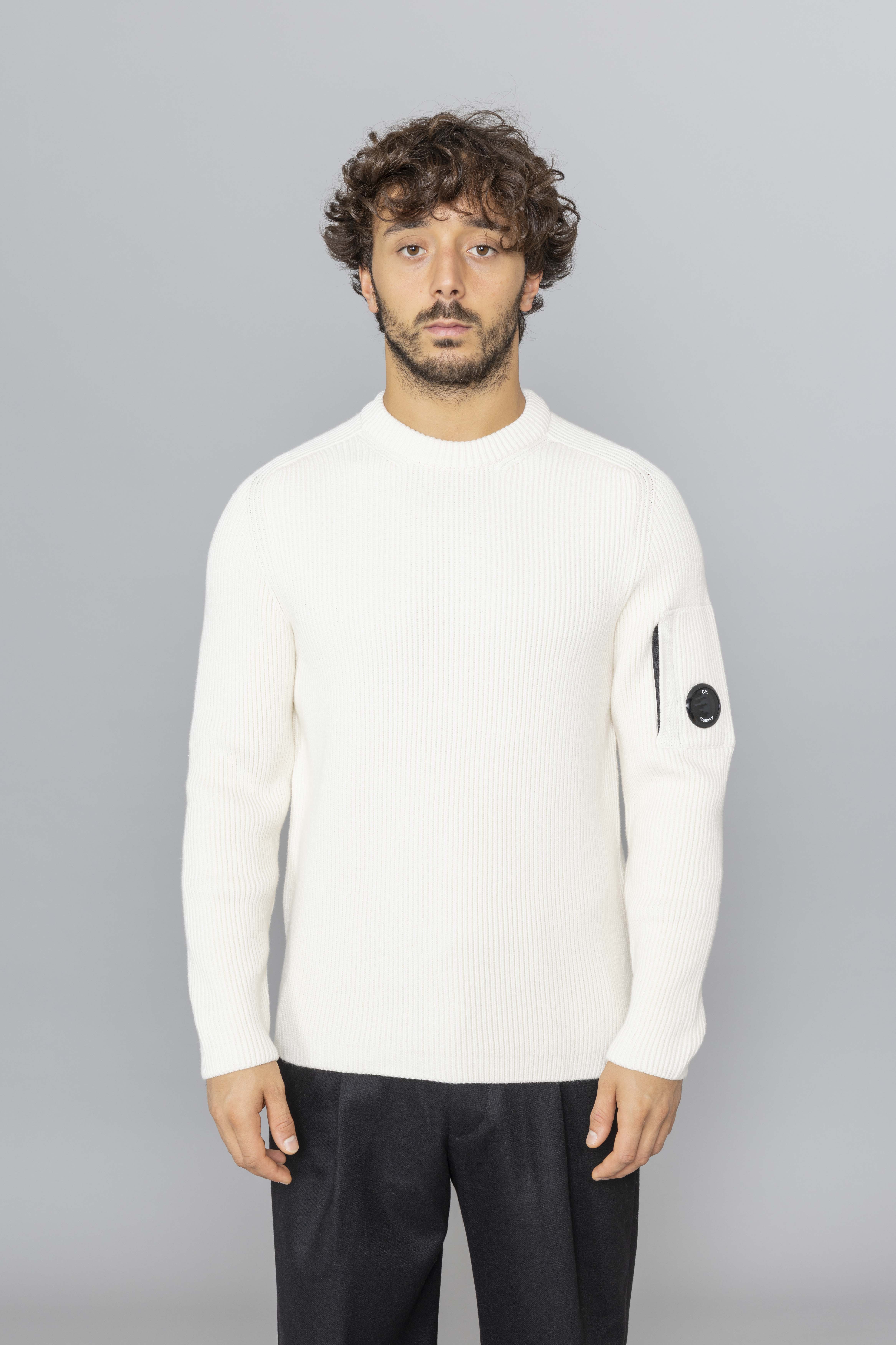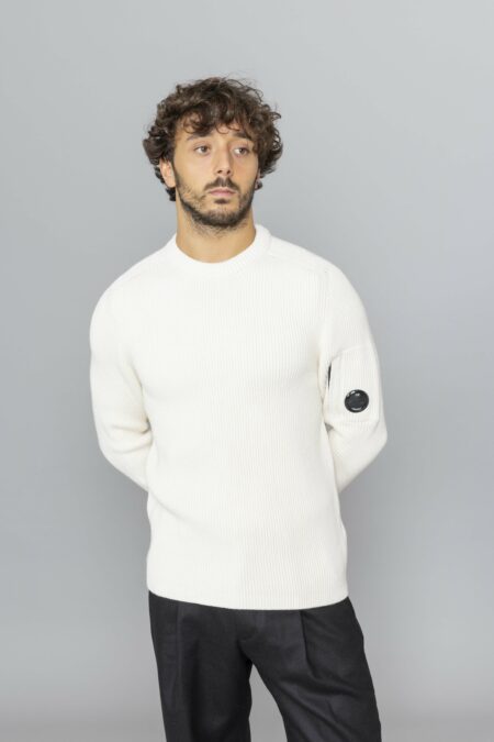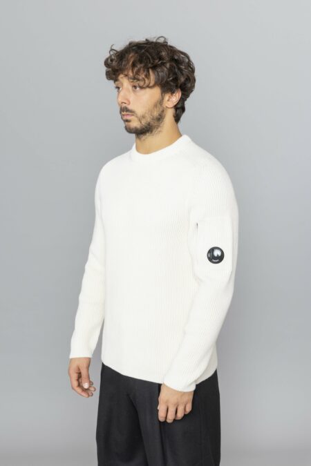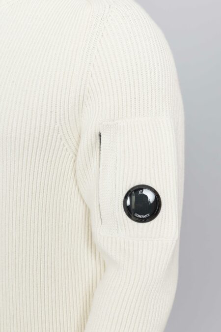 C.P. Company Full Rib Crewneck Lens Sweater Gauze white