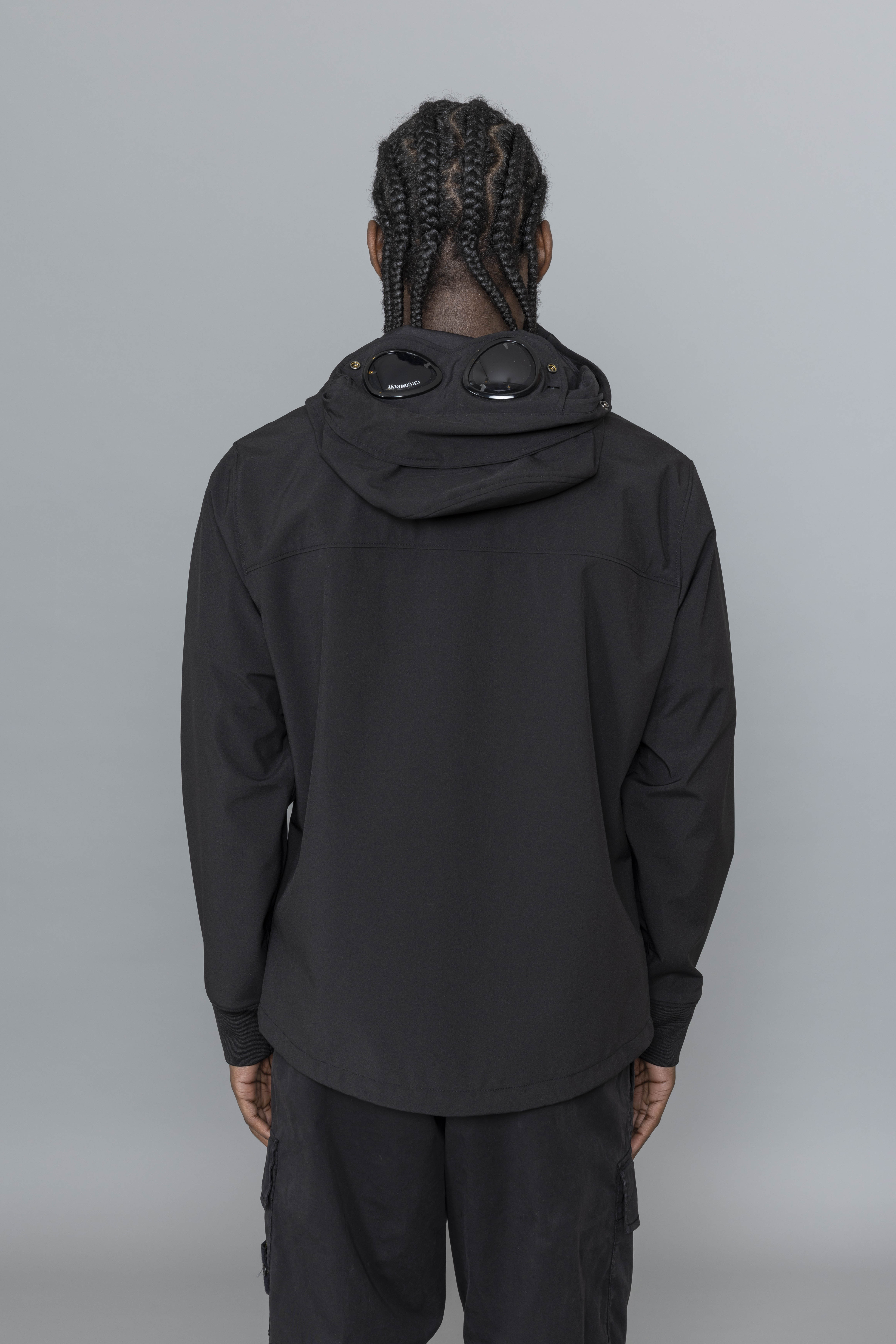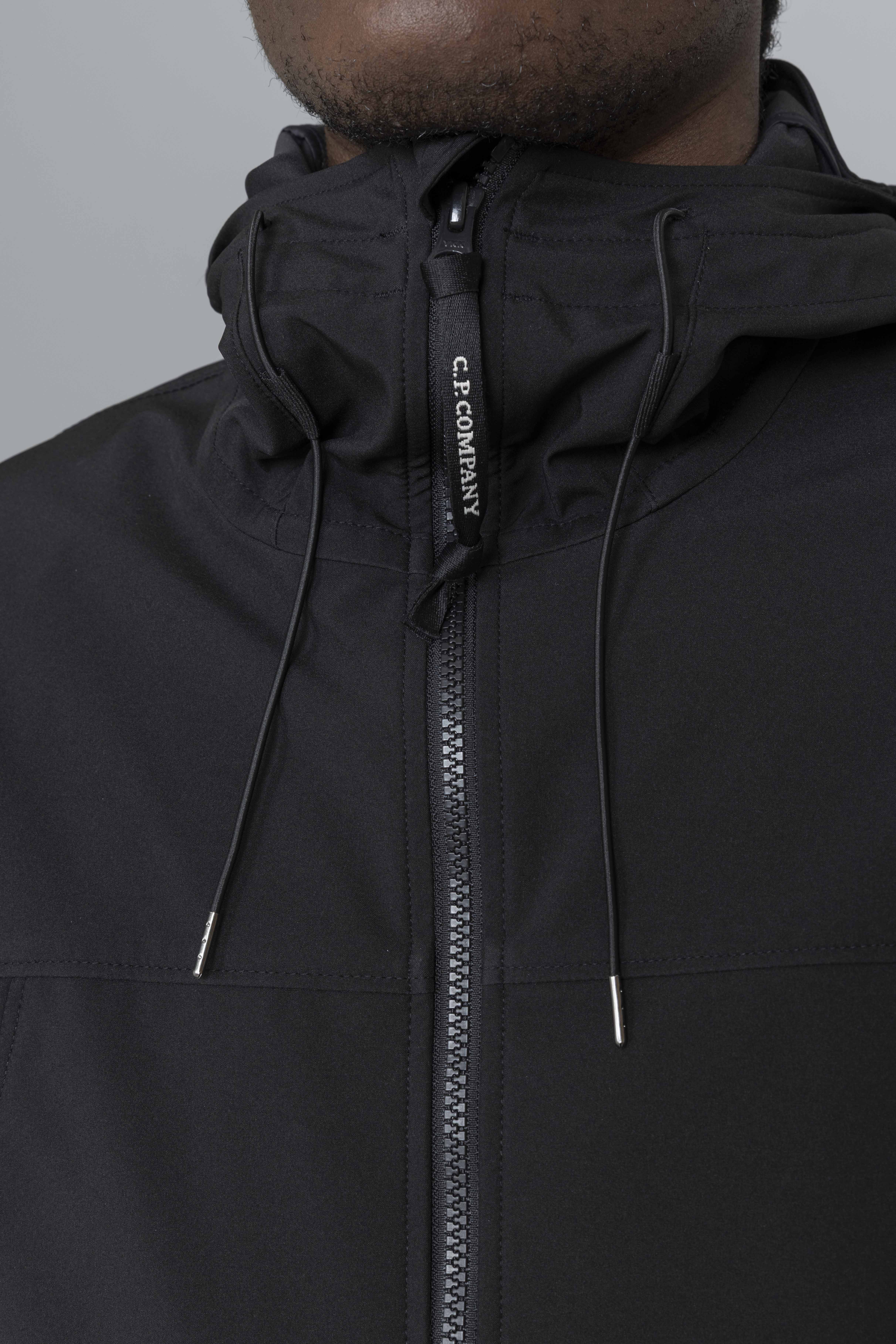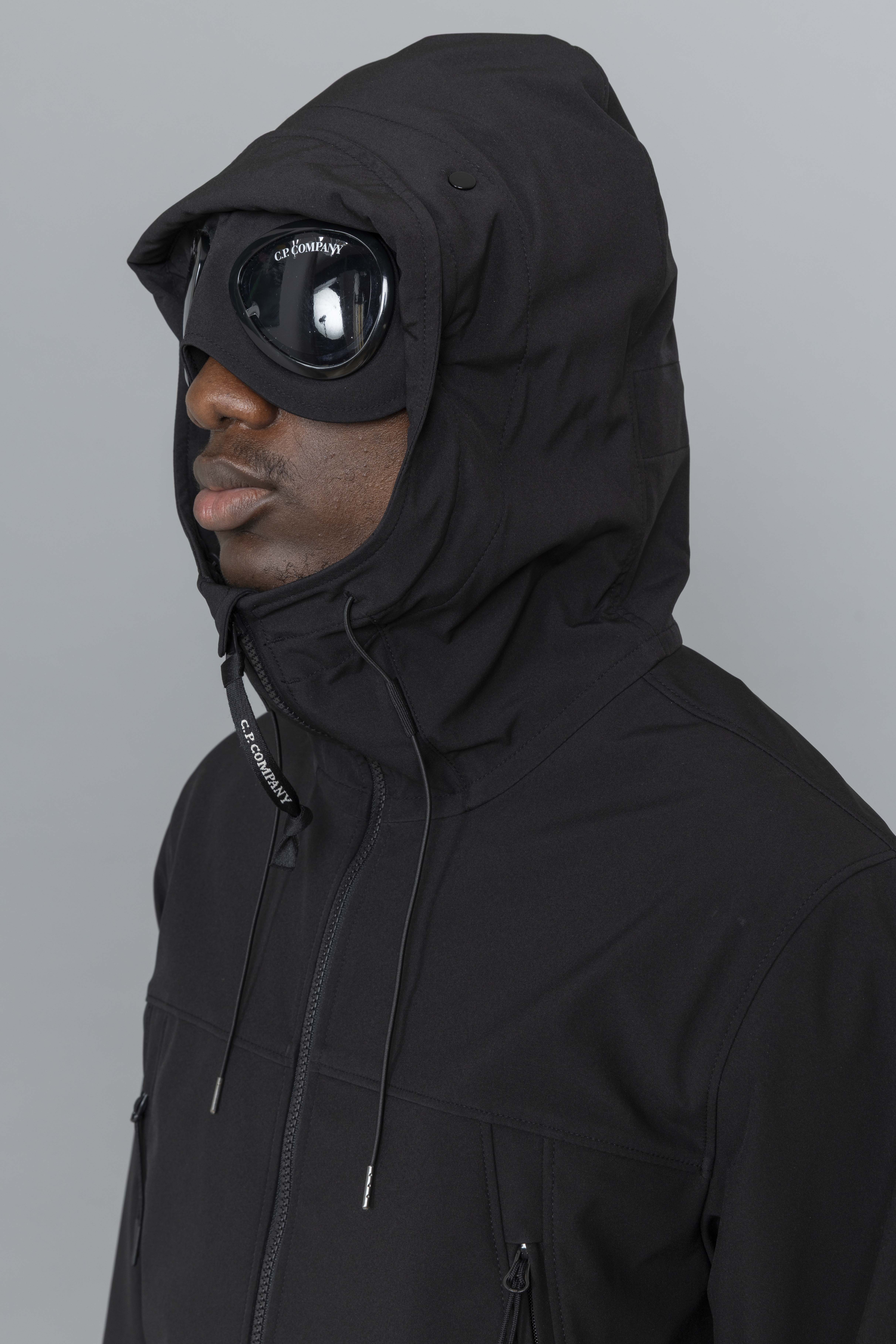 C.P. Company Shell-R Goggle Jacket Black is cut from stretch nylon using recycled yarns, adjusted fit. The Shell-R jacket from C.P. Company has a 3 layers construction providing breathability, water and wind resistance. Featuring adjustable hood with goggle details, zipped pockets, elasticated cuffs, adjustable waist band anf two way zipper.