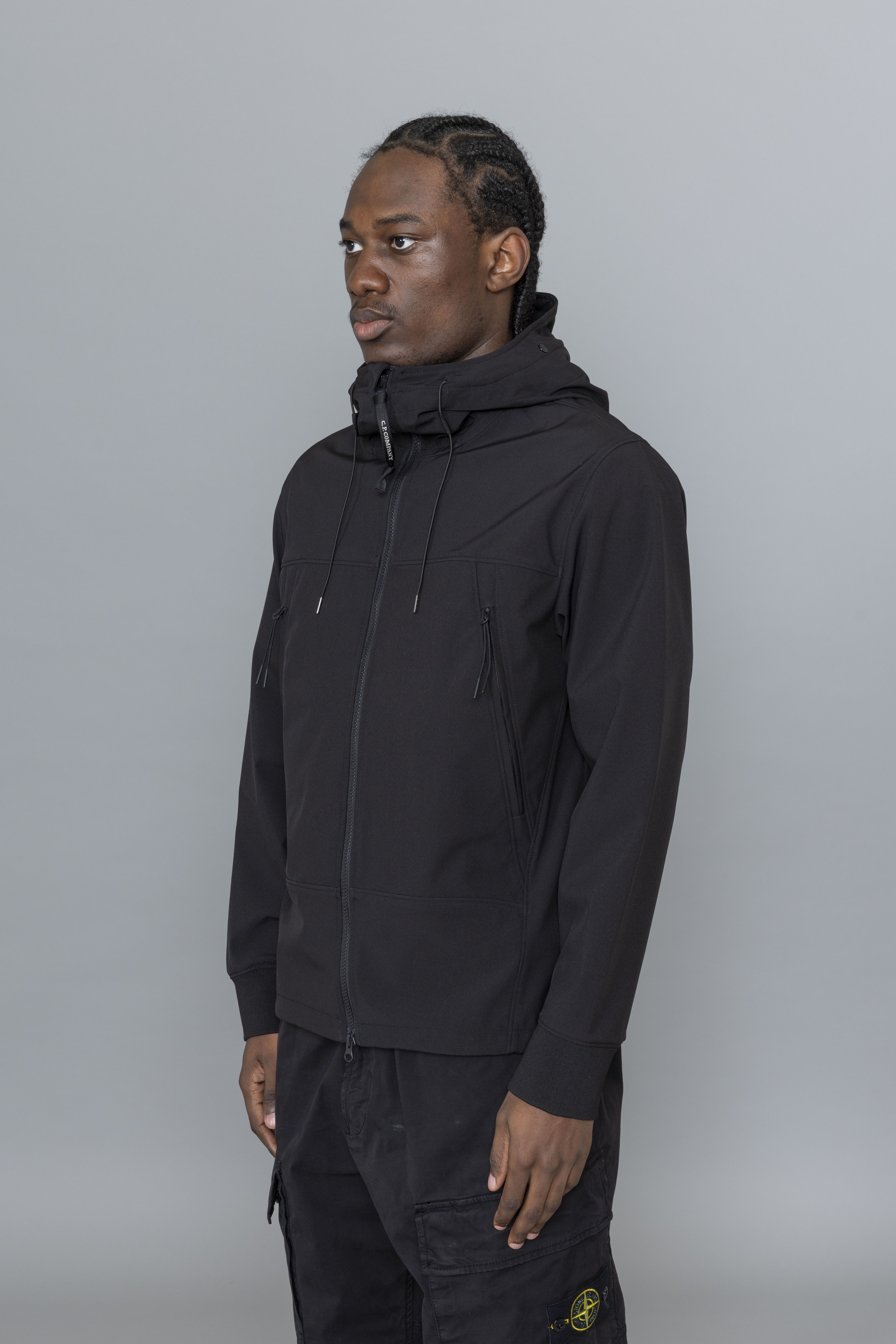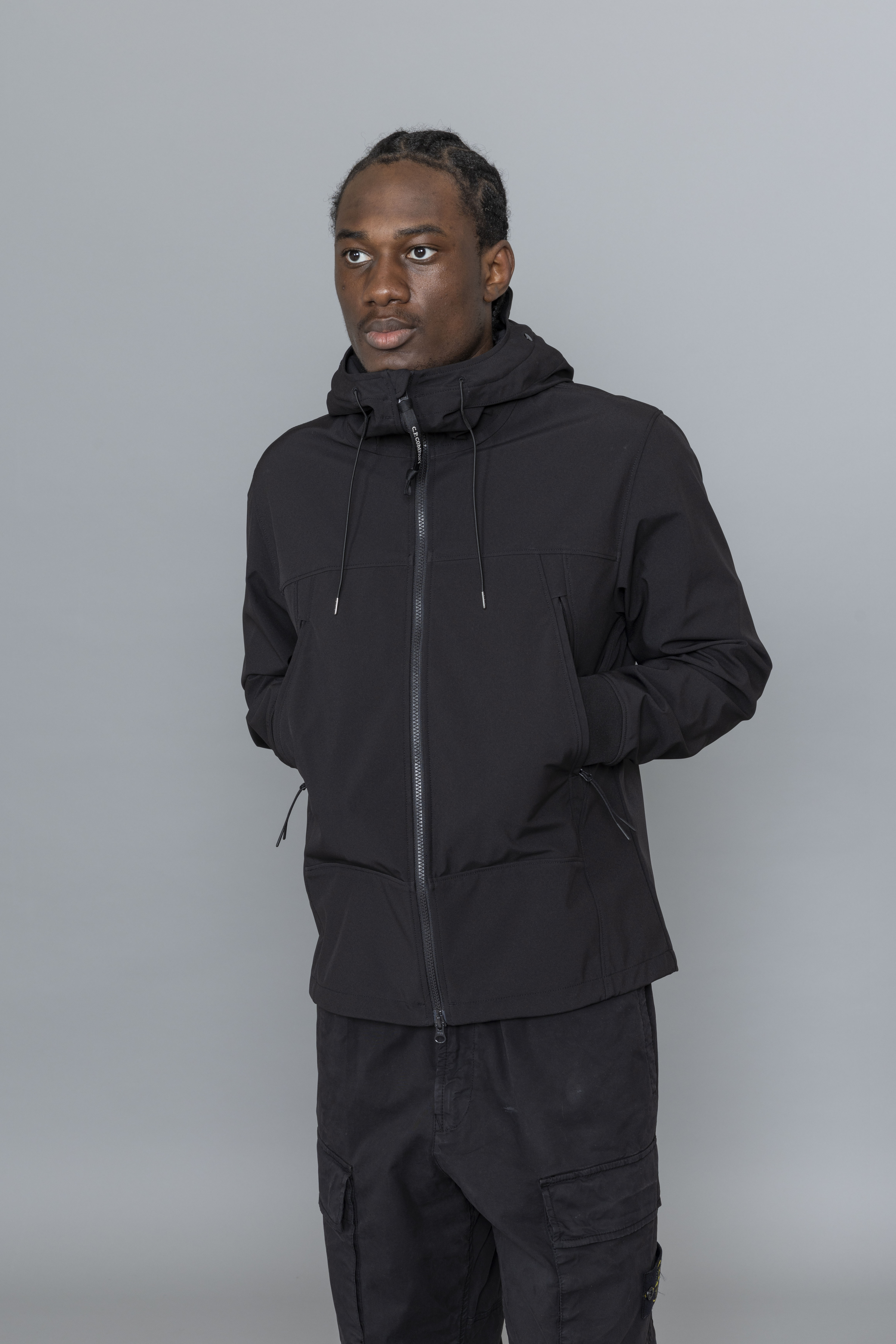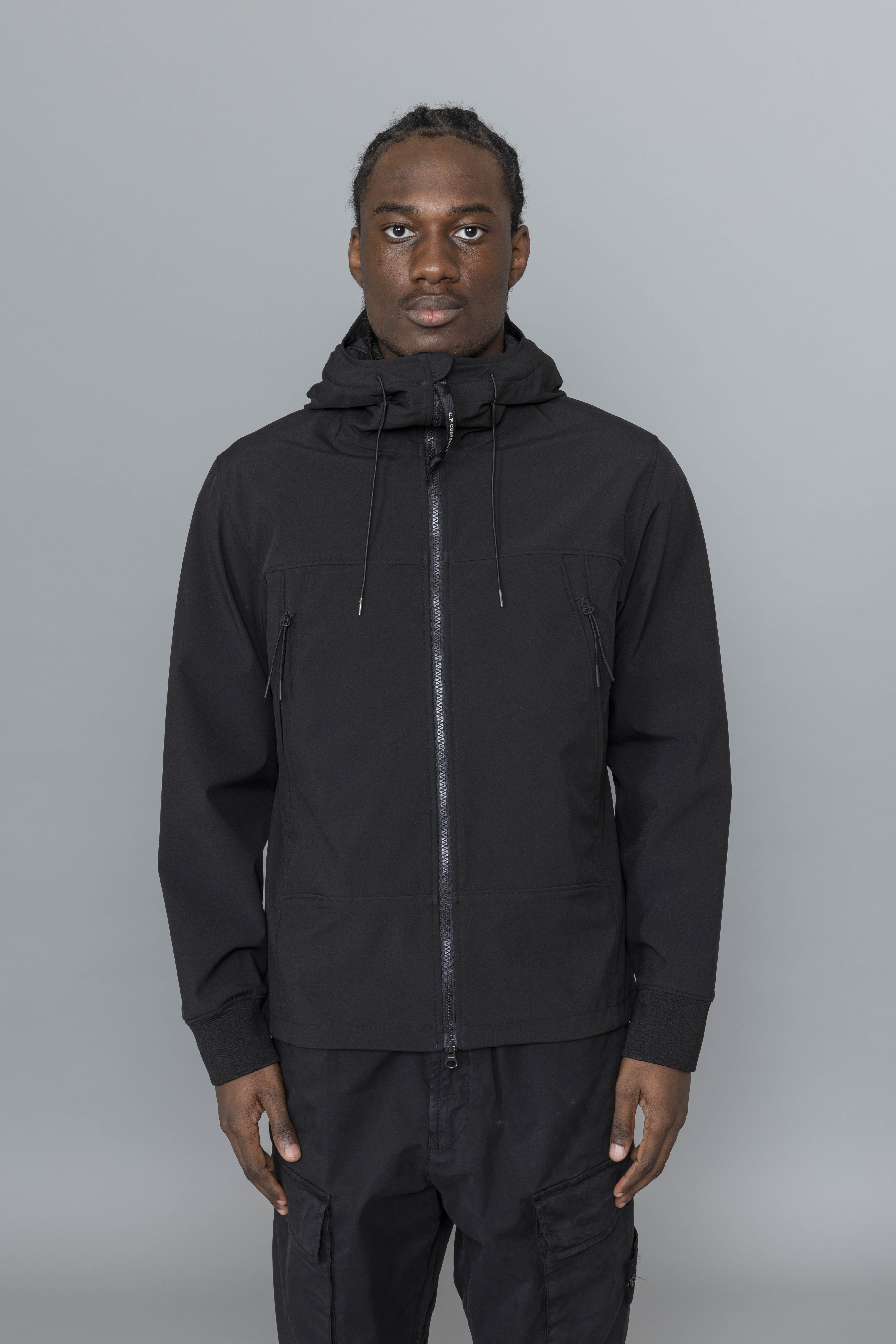 C.P. Company Shell-R Goggle Jacket Black is cut from stretch nylon using recycled yarns, adjusted fit. The Shell-R jacket from C.P. Company has a 3 layers construction providing breathability, water and wind resistance. Featuring adjustable hood with goggle details, zipped pockets, elasticated cuffs, adjustable waist band anf two way zipper.