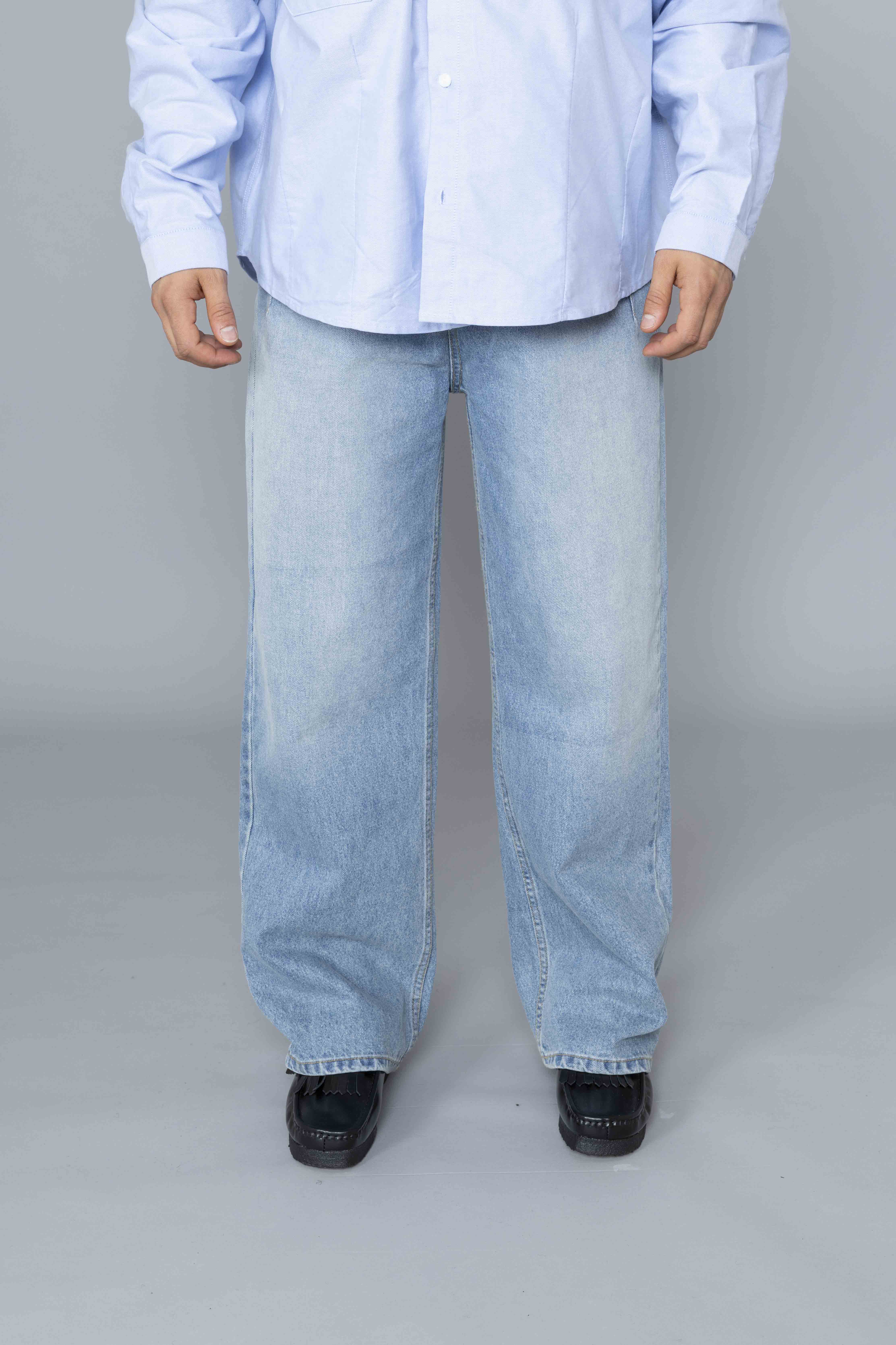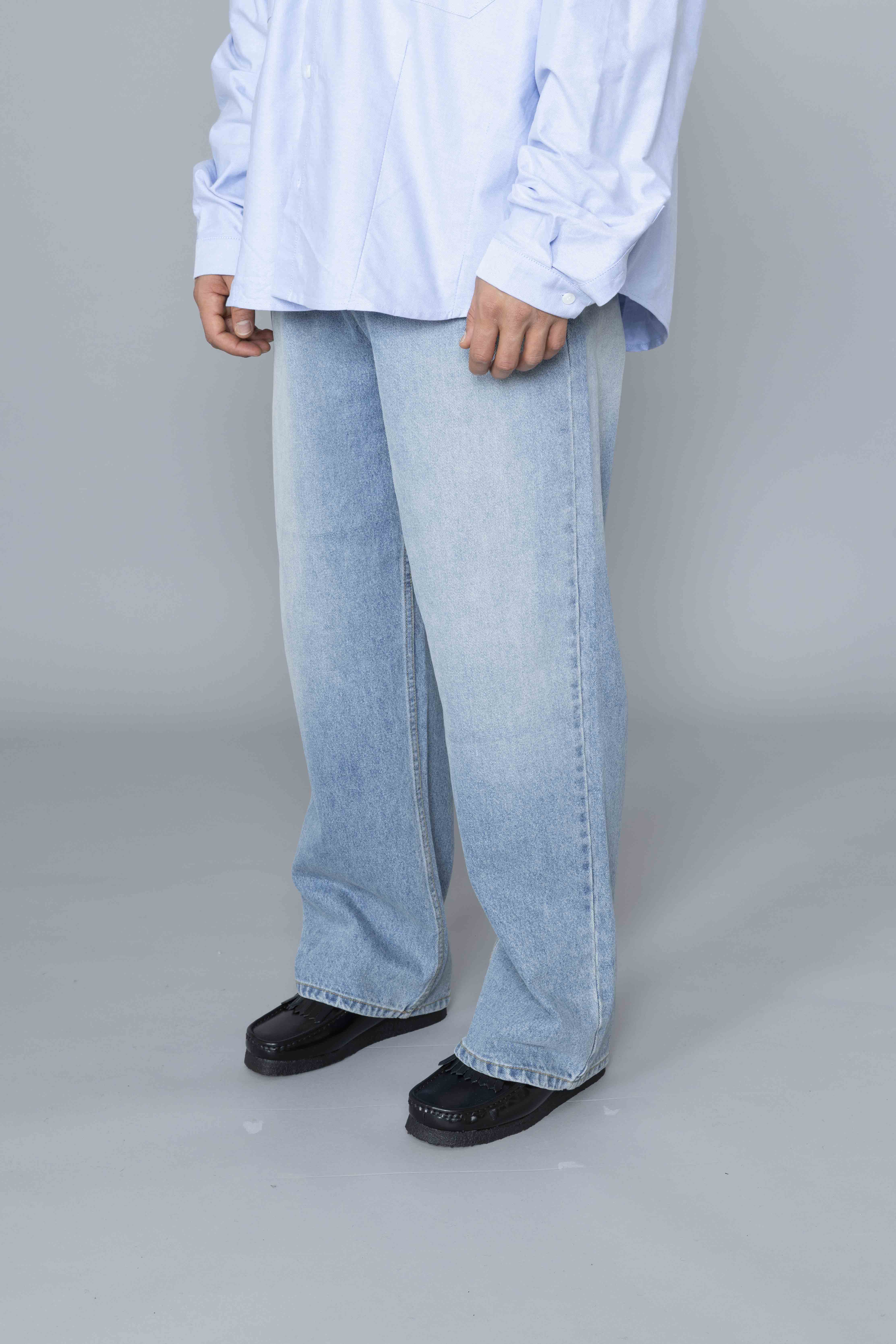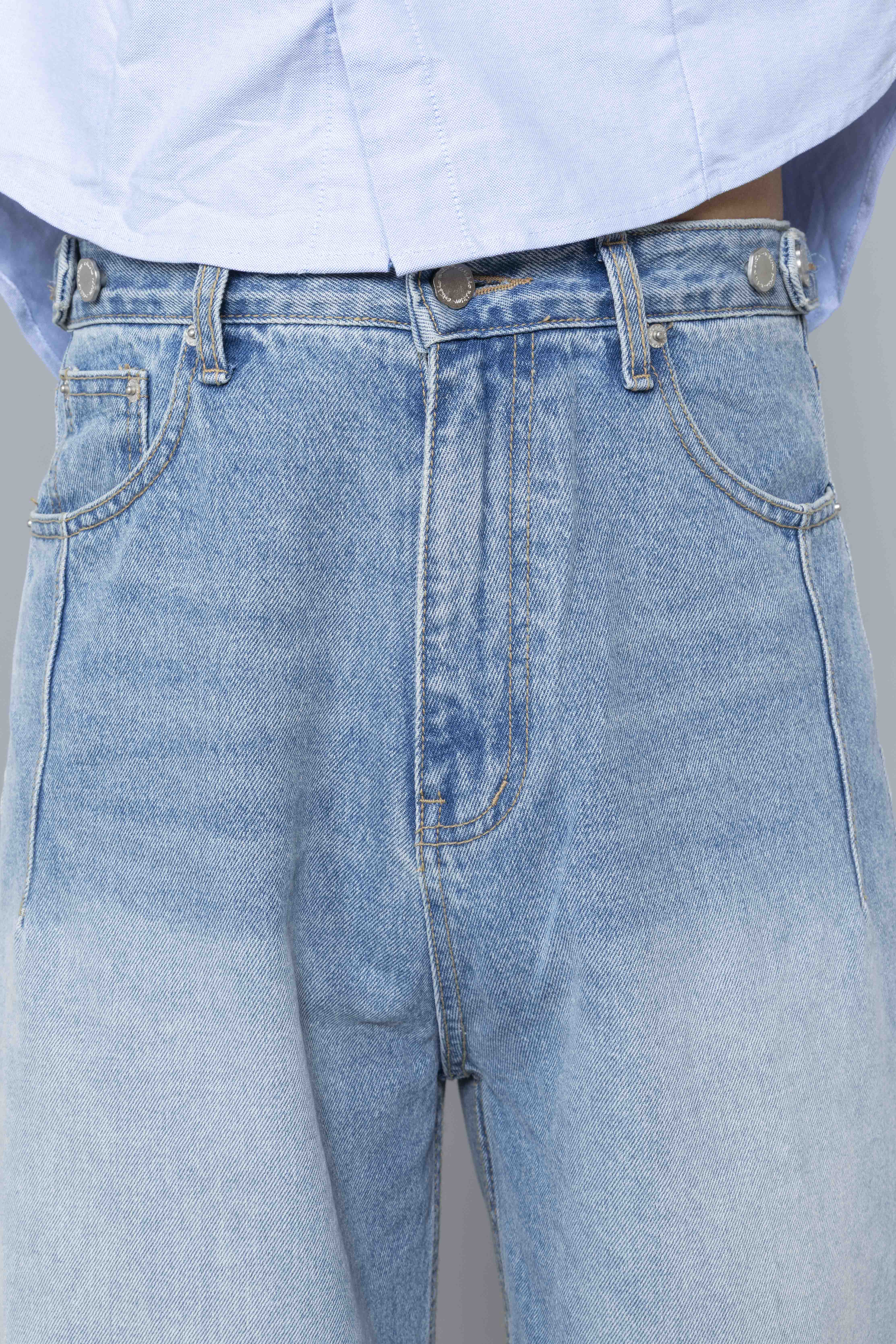 Side-button Denim Jeans Blue Wash