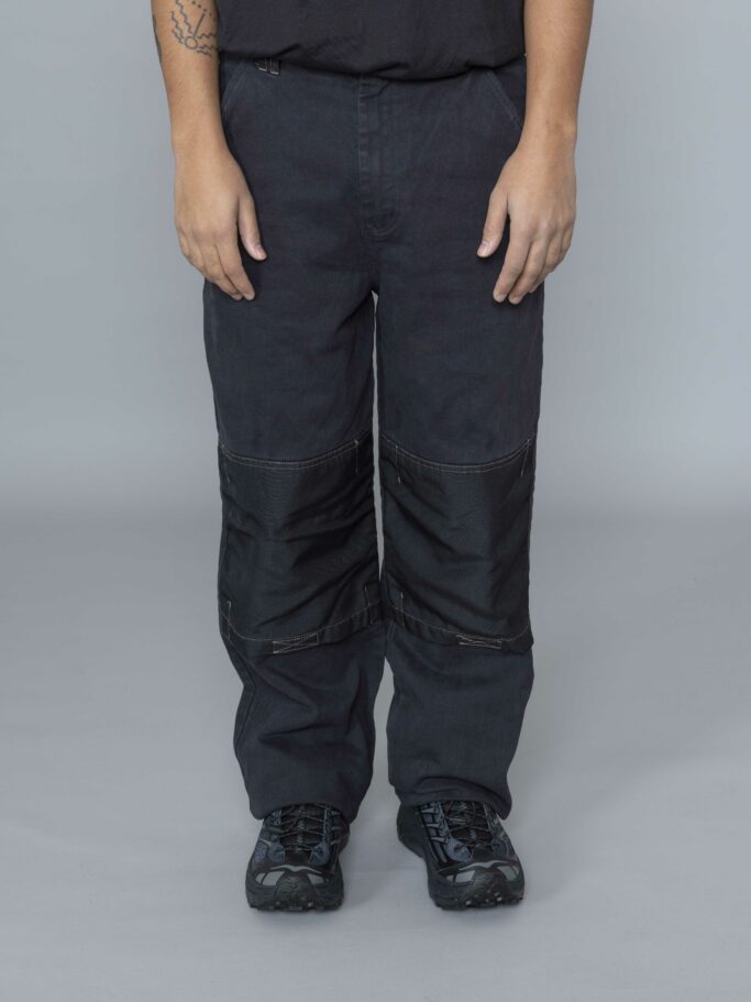 KA_YO_Prototype Parachute Pants Charcoal, cut from a double-faced weave made of recycled polyester and nylon, the Parachute Pant offers high-performance utility with stretch and quick-dry capability. Built for movement and adaptation, it features two side pockets, a built-in buckled nylon waist adjuster, and adjustable hem toggles for tailored fit.