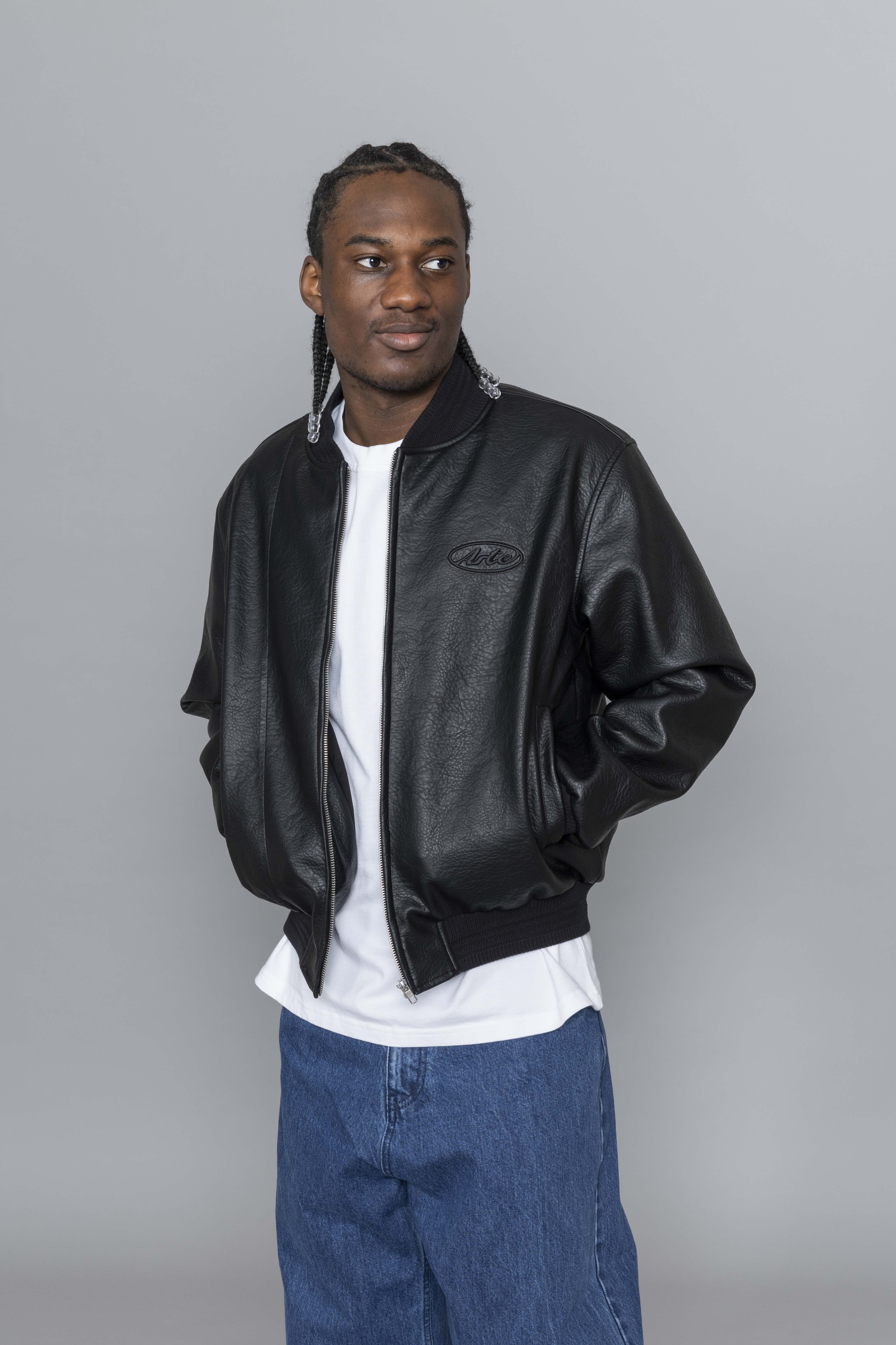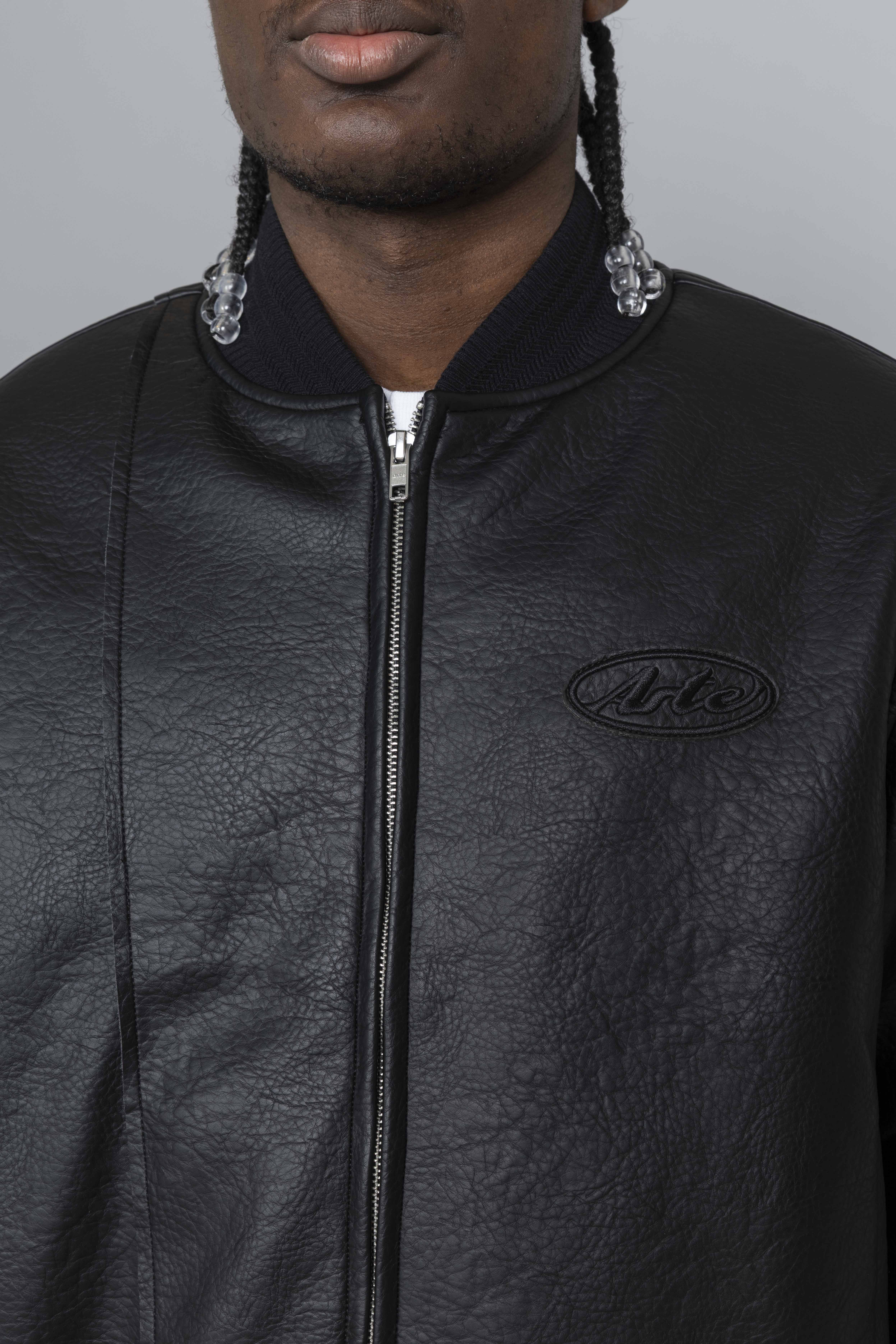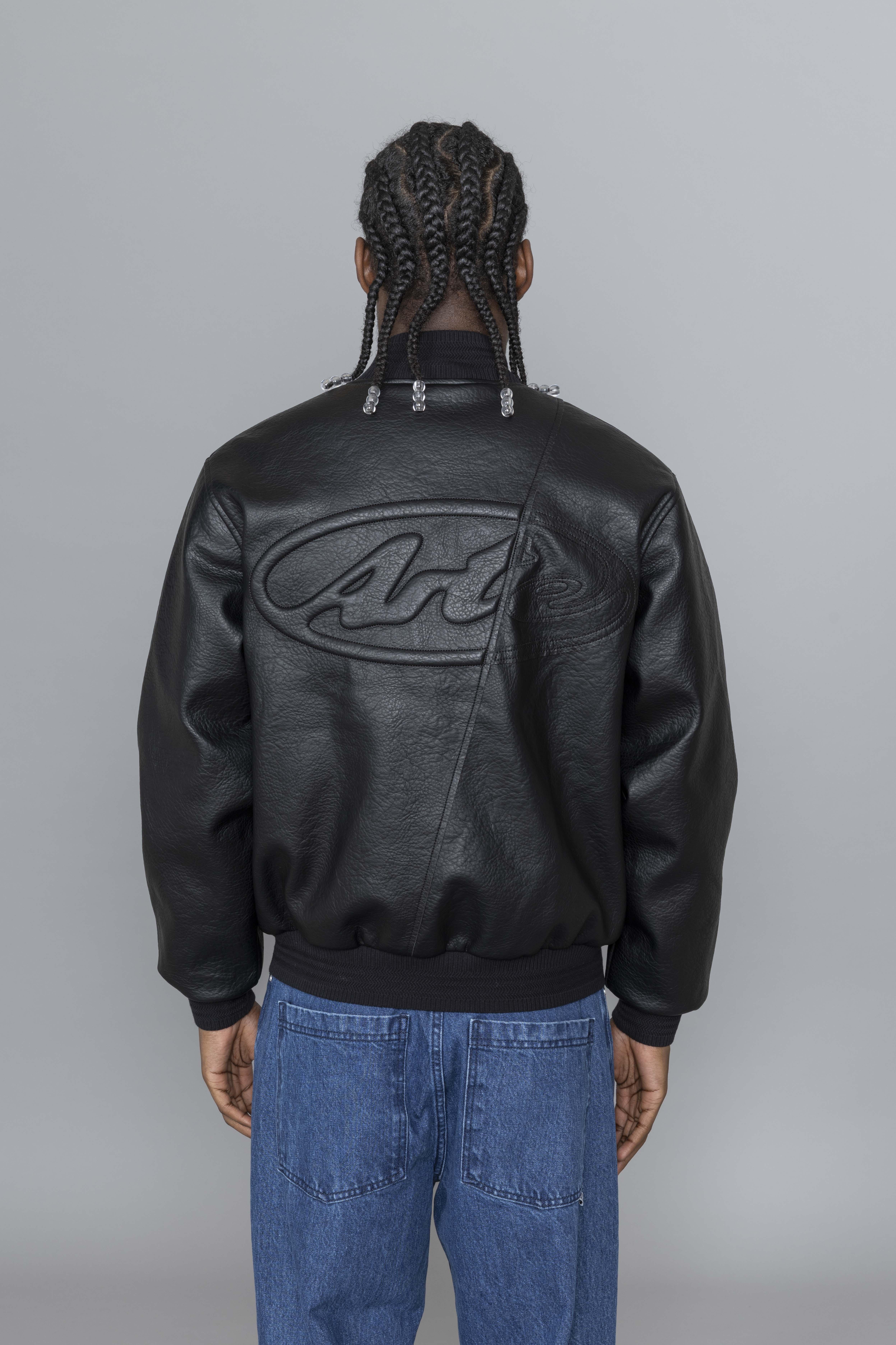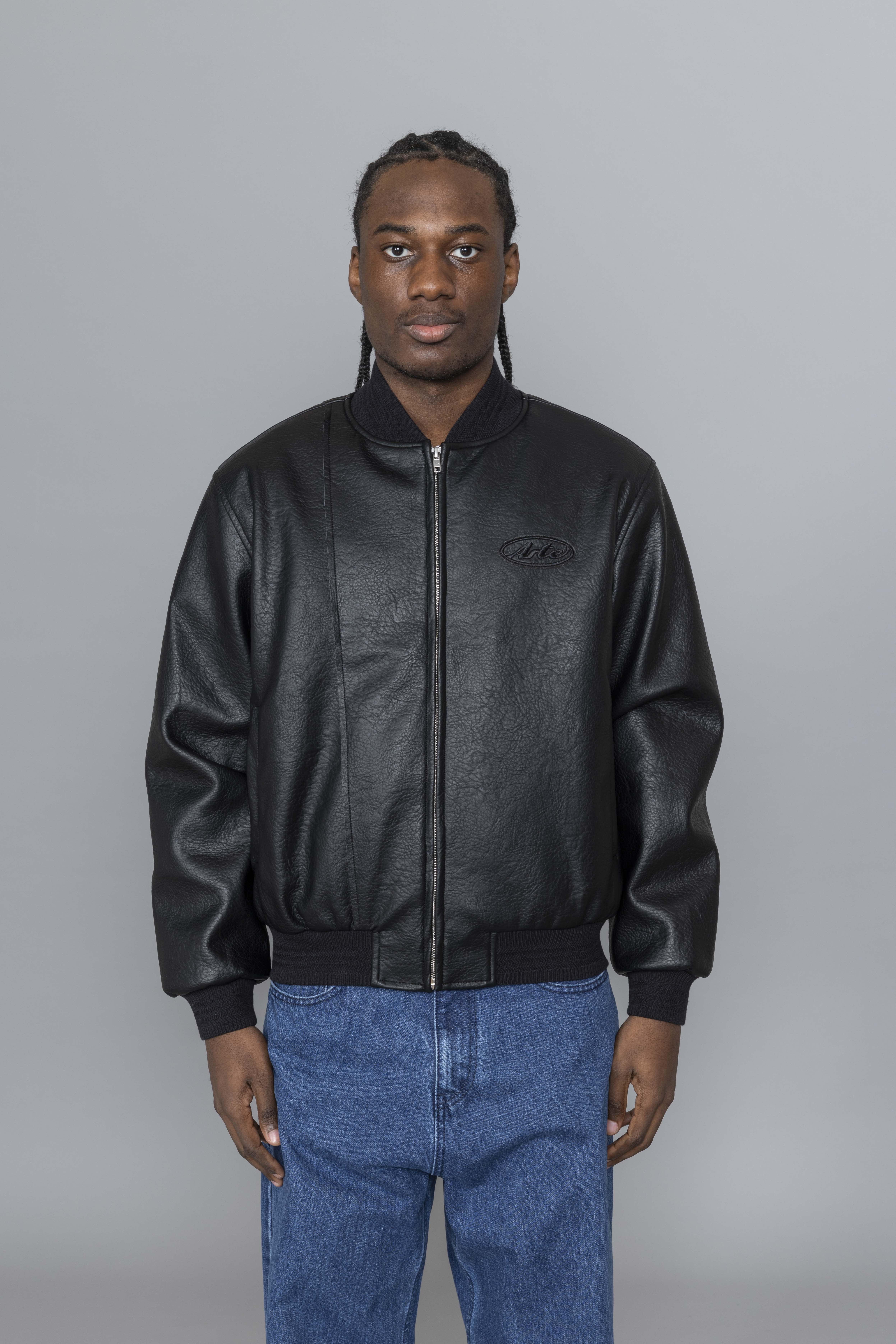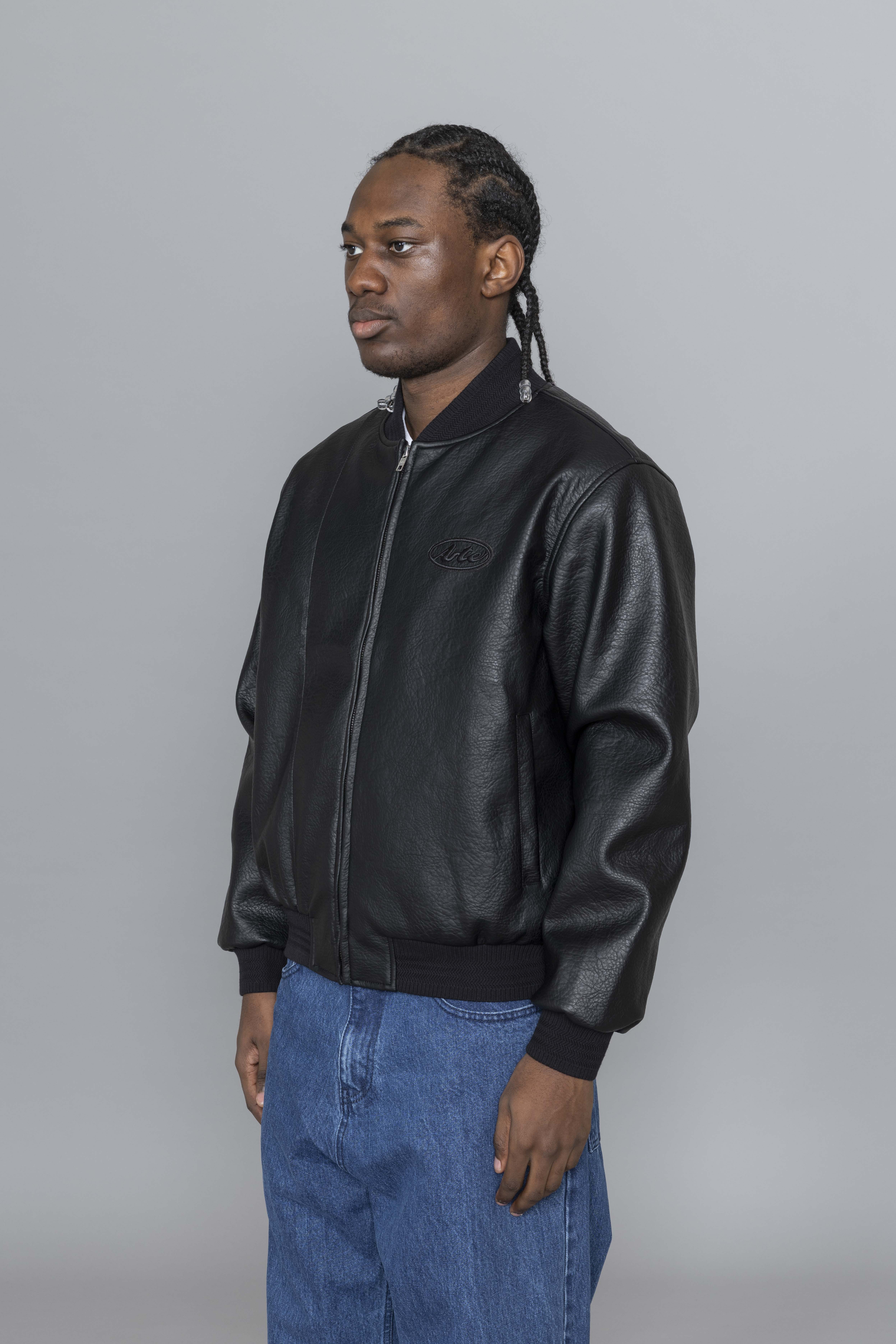 Arte Antwerp Leather Varsity Jacket Black