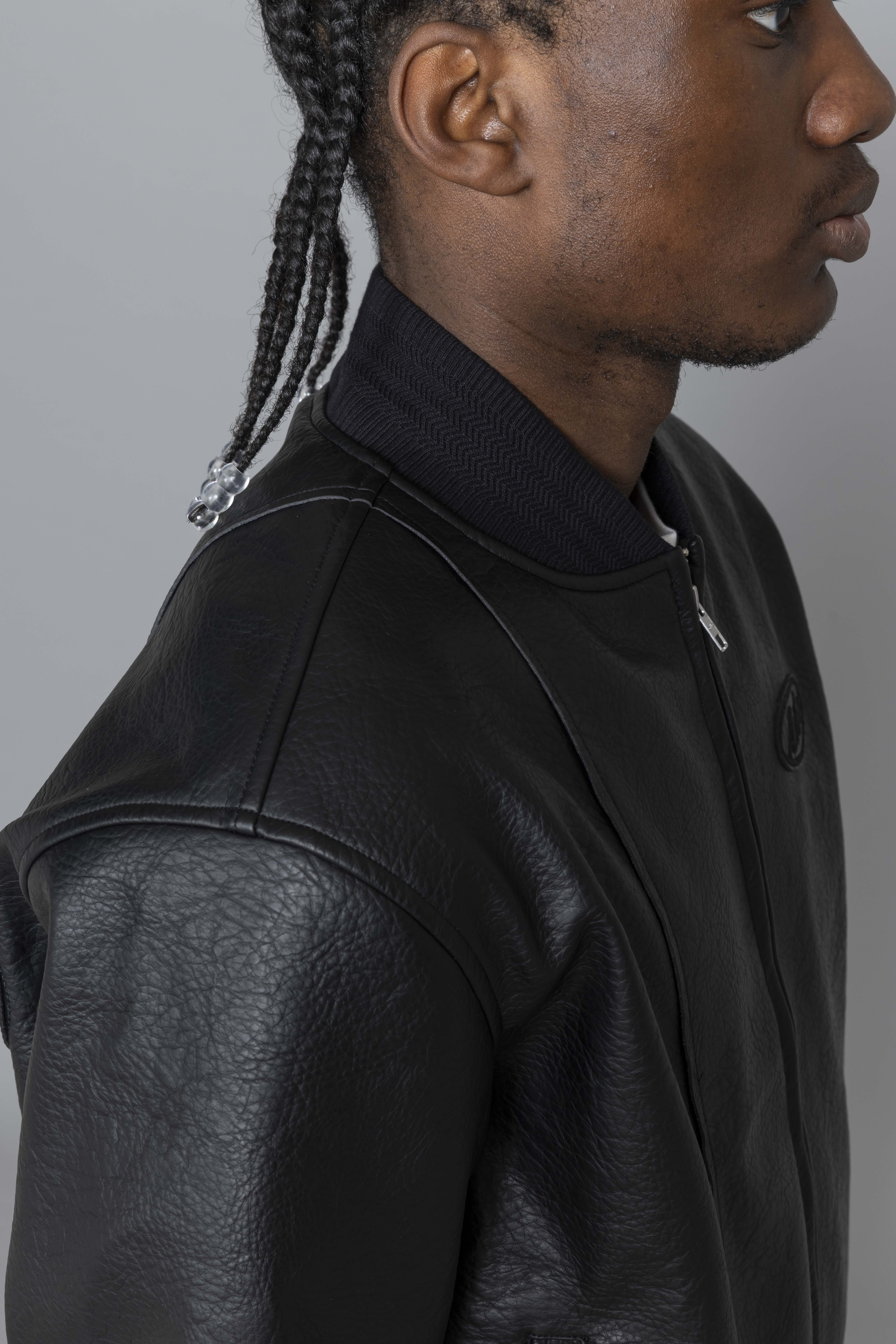 Leather Varsity Jacket Black