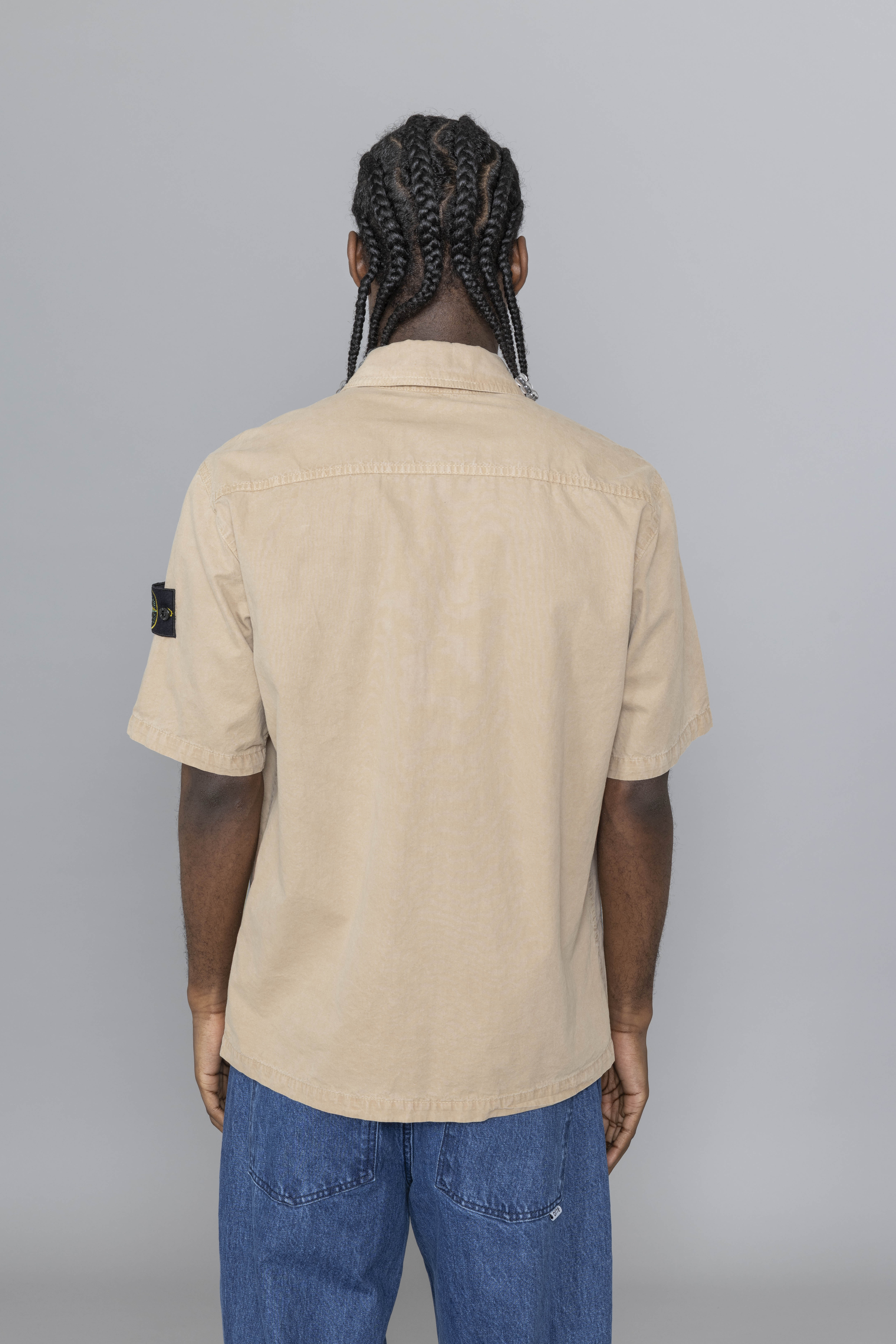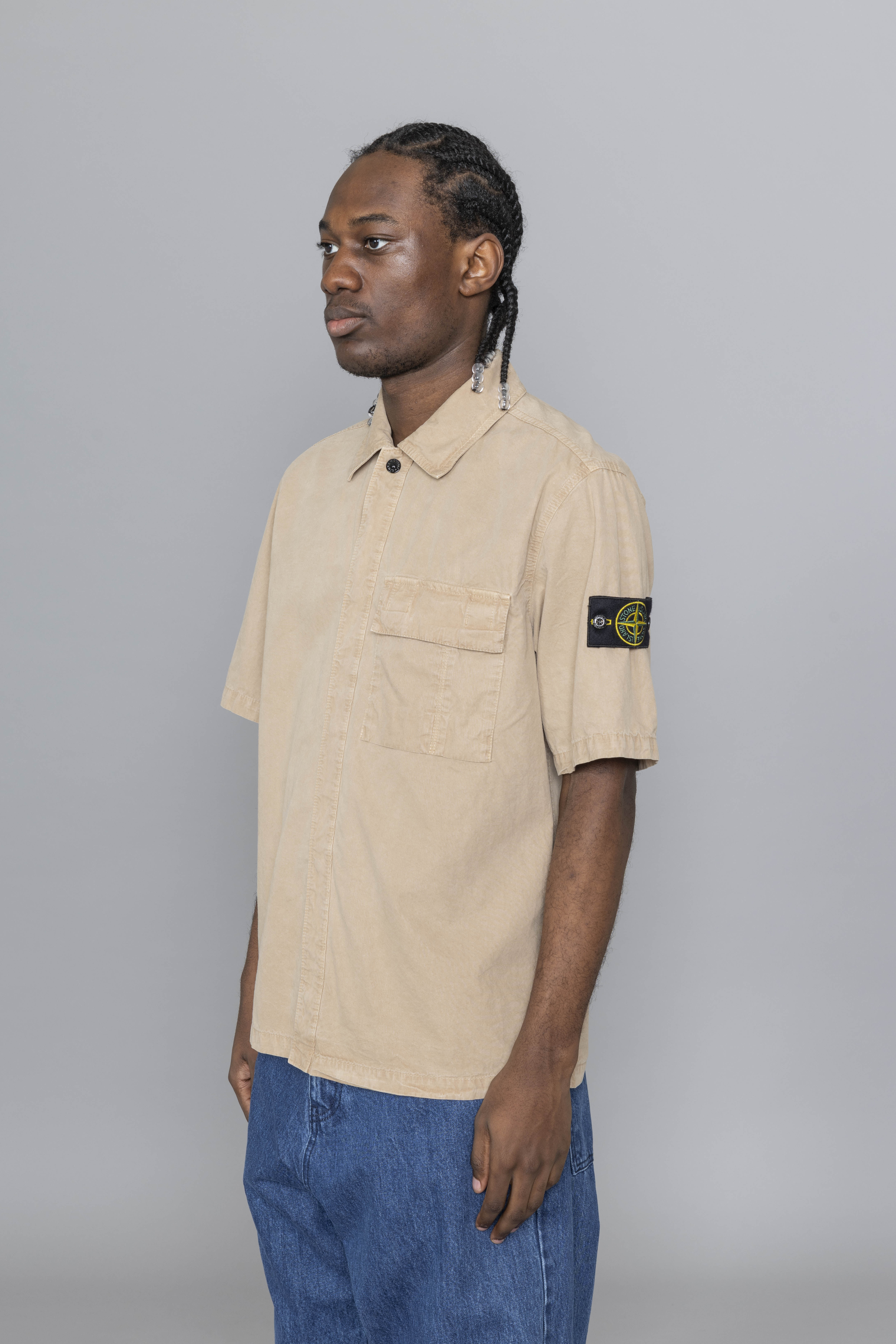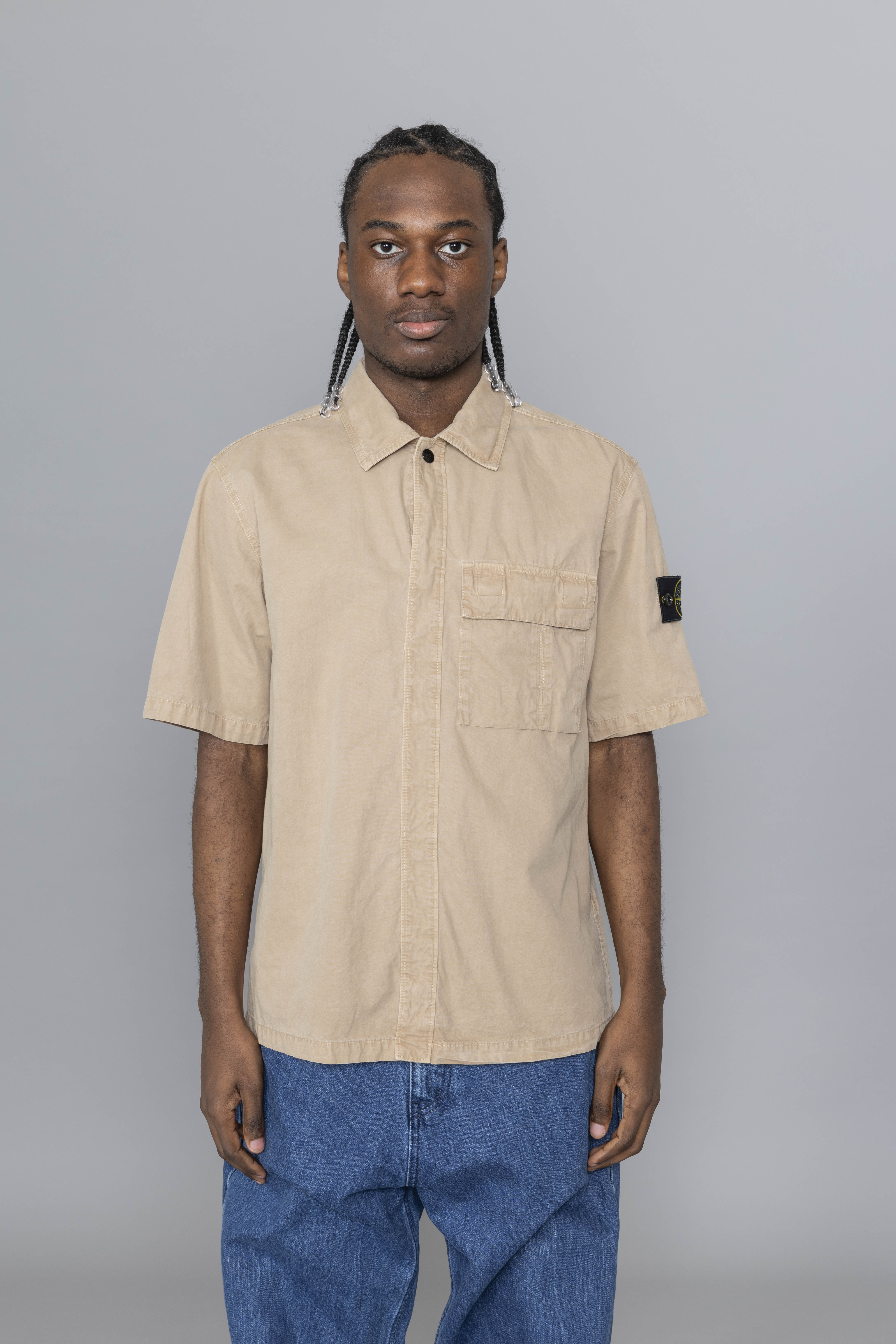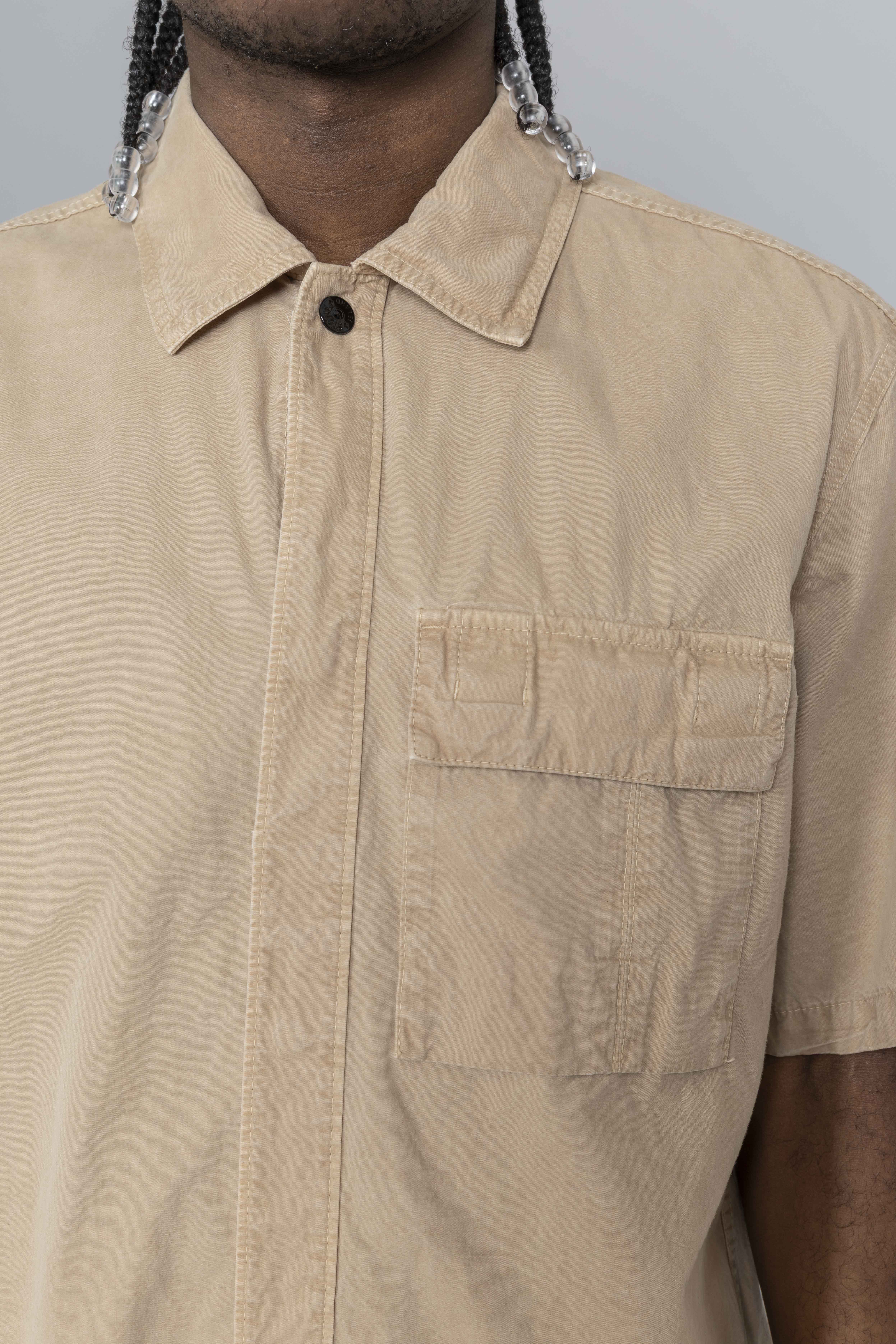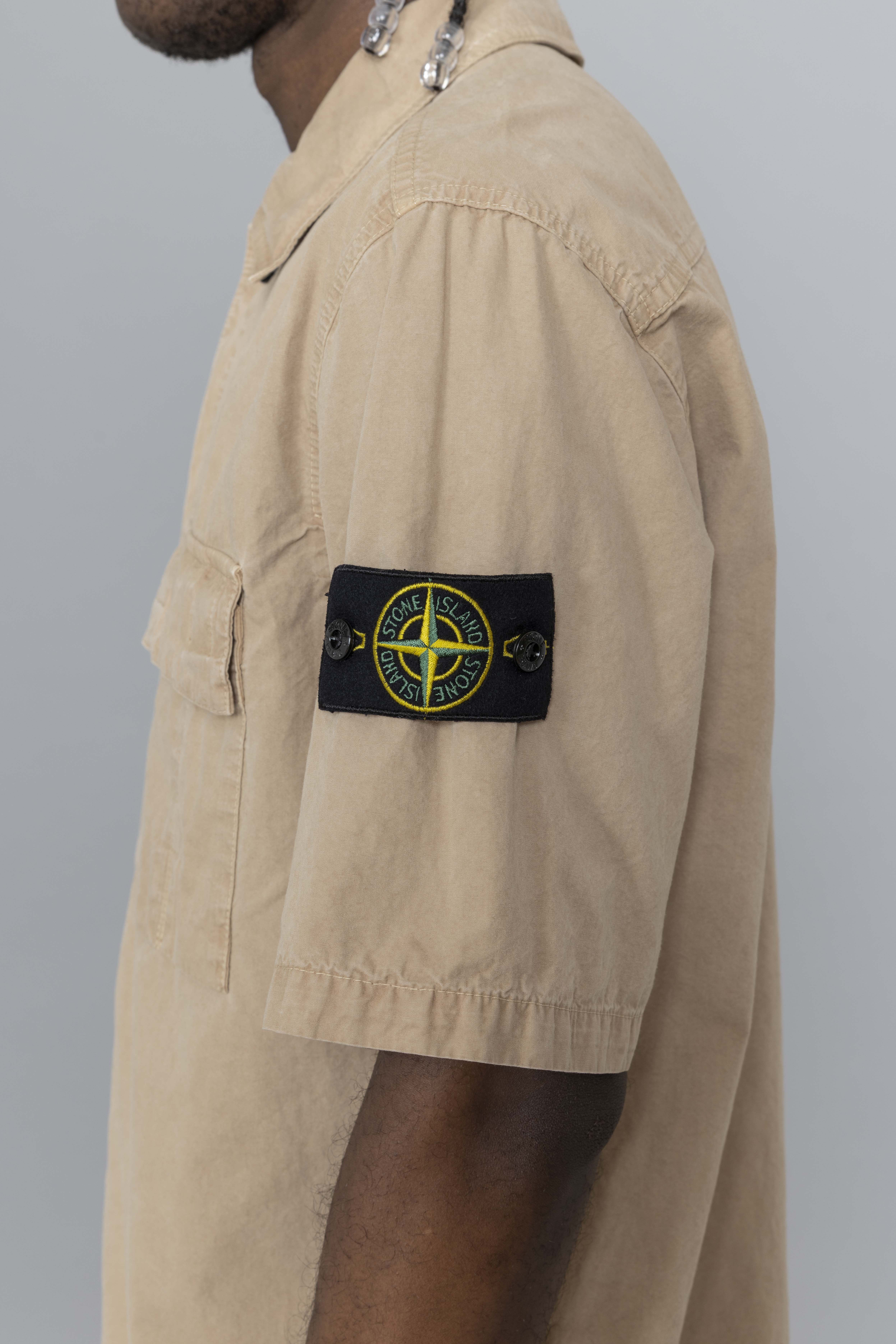 Stone Island Brushed Organic Cotton Canvas Old Effect Shirt Desert