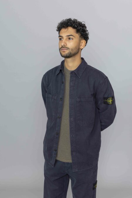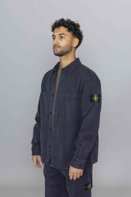 Stone Island Overshirt Organic Panama Cotton Old Effect Ink Blue