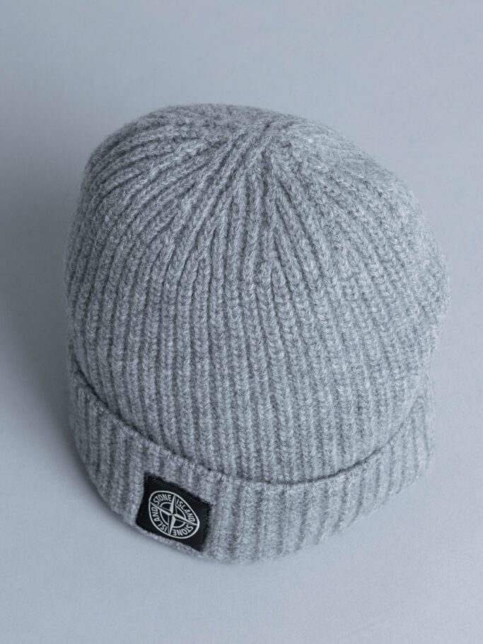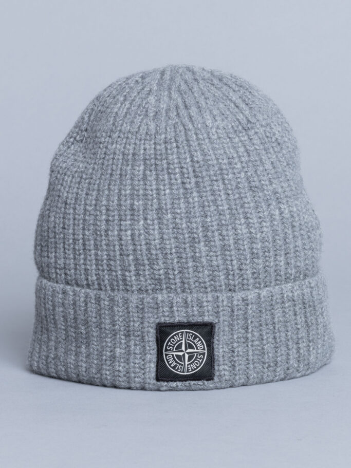 Stone Island Ribbed Wool Beanie Lead Grey is cut from premium wool. Ribbed 7 gauge beanie with Stone Island Compass patch logo on the cuff.