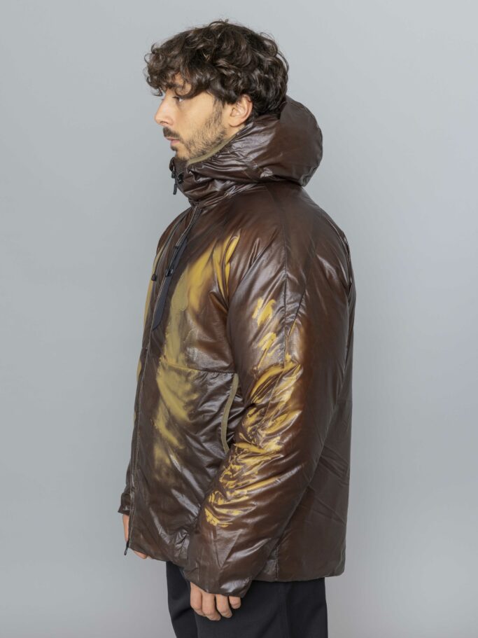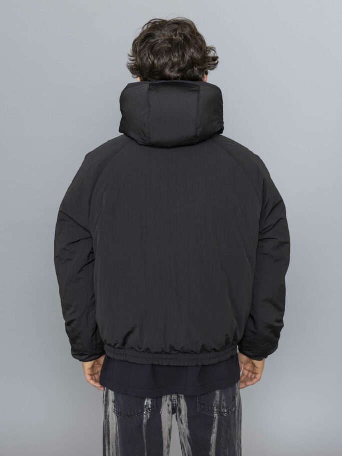 Stone Island Soft Shell-R E Dye Jacket Technology Black. Light hooded jacket crafted from 3-ply performance fabric with 8000 mm water resistance. The stretch polyester outer is dyed with e.dye® Waterless Color System™ for rich, sustainable color. Laminated to a breathable, wind- and water-resistant membrane and backed with soft pile, it offers exceptional flexibility and all-day comfort. Designed to move with you, it delivers reliable protection without compromising style.