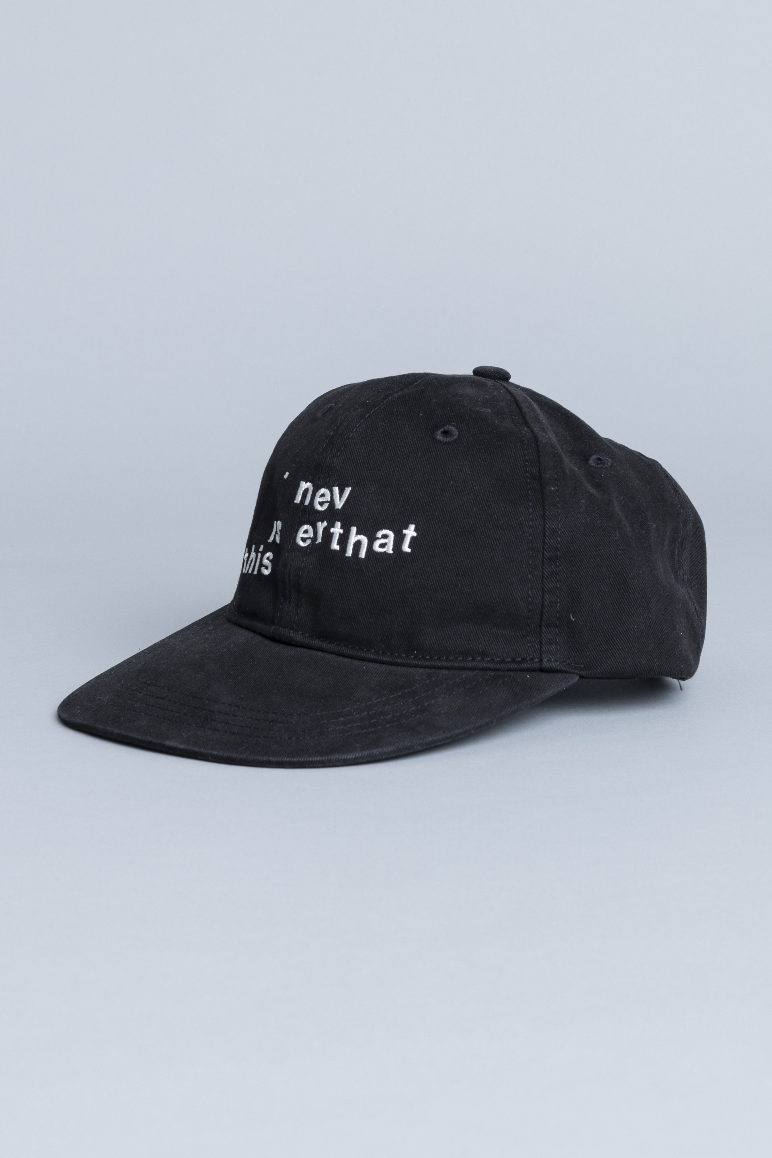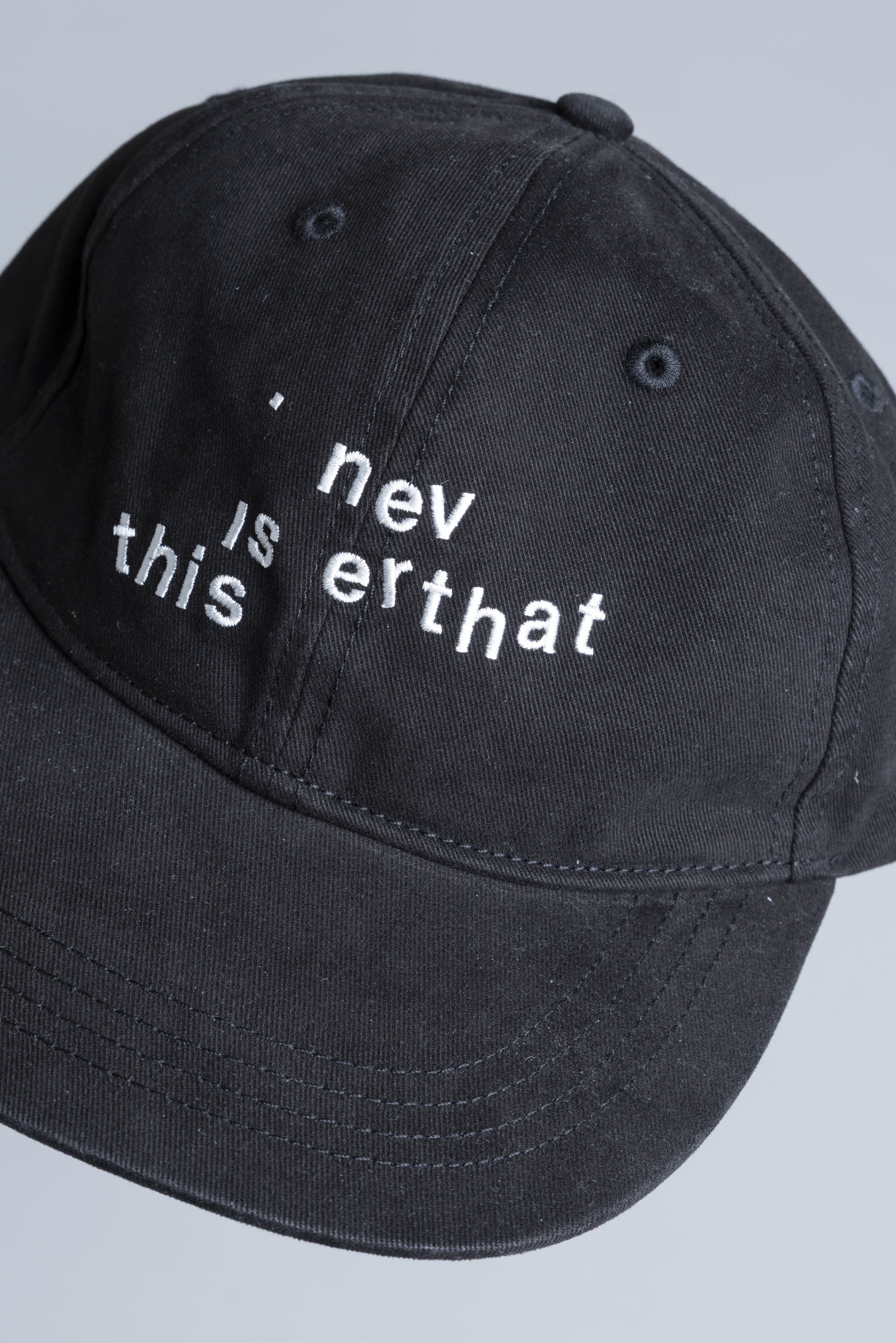 Thisisneverthat Broken logo cap Black. Crafted from cotton twill, this cap features a low-profile, unstructured 6-panel construction for an easy, relaxed fit. Bio stone-washed for a worn-in finish, it’s detailed with embroidered artwork on the front and an adjustable strapback closure for everyday wear.
