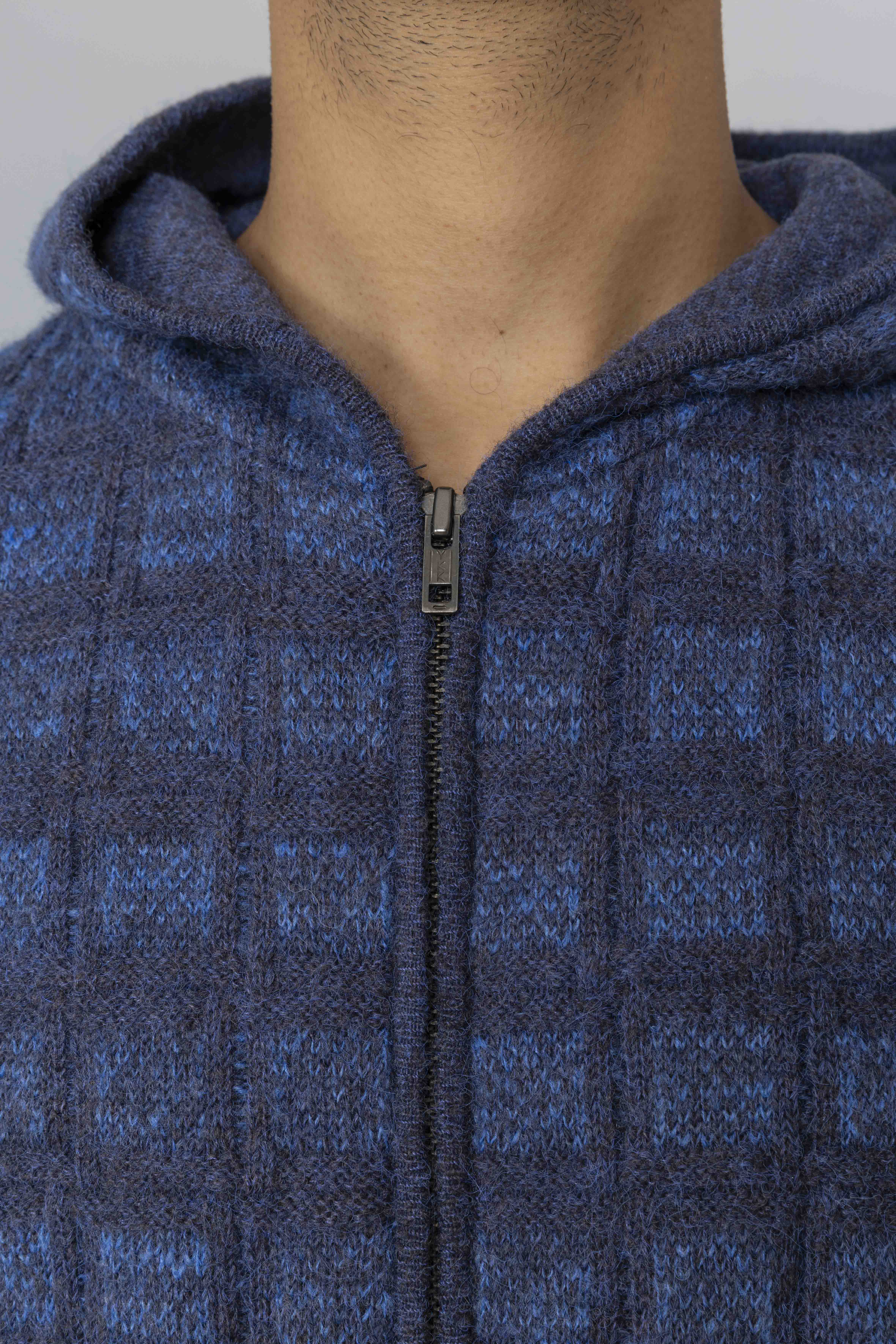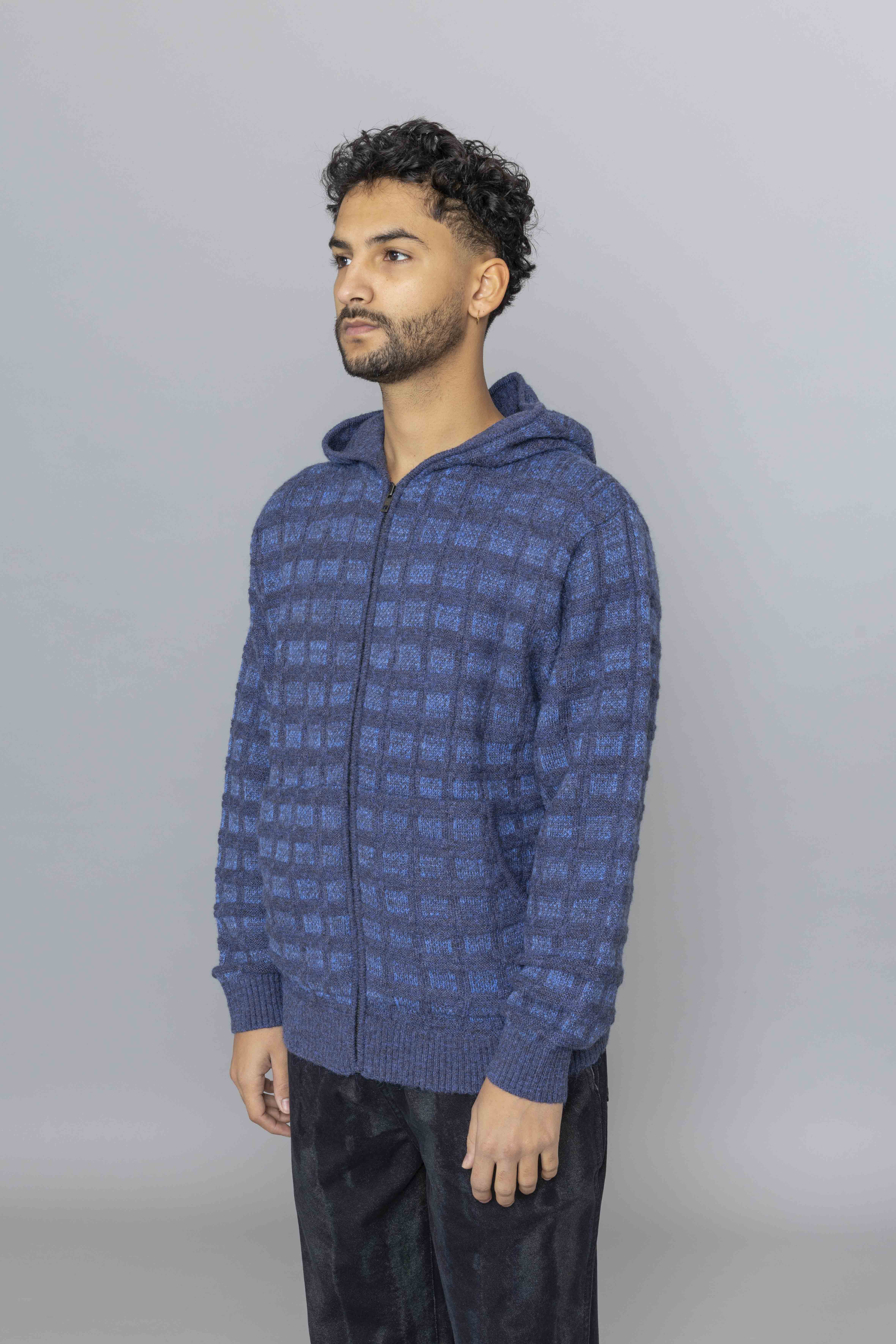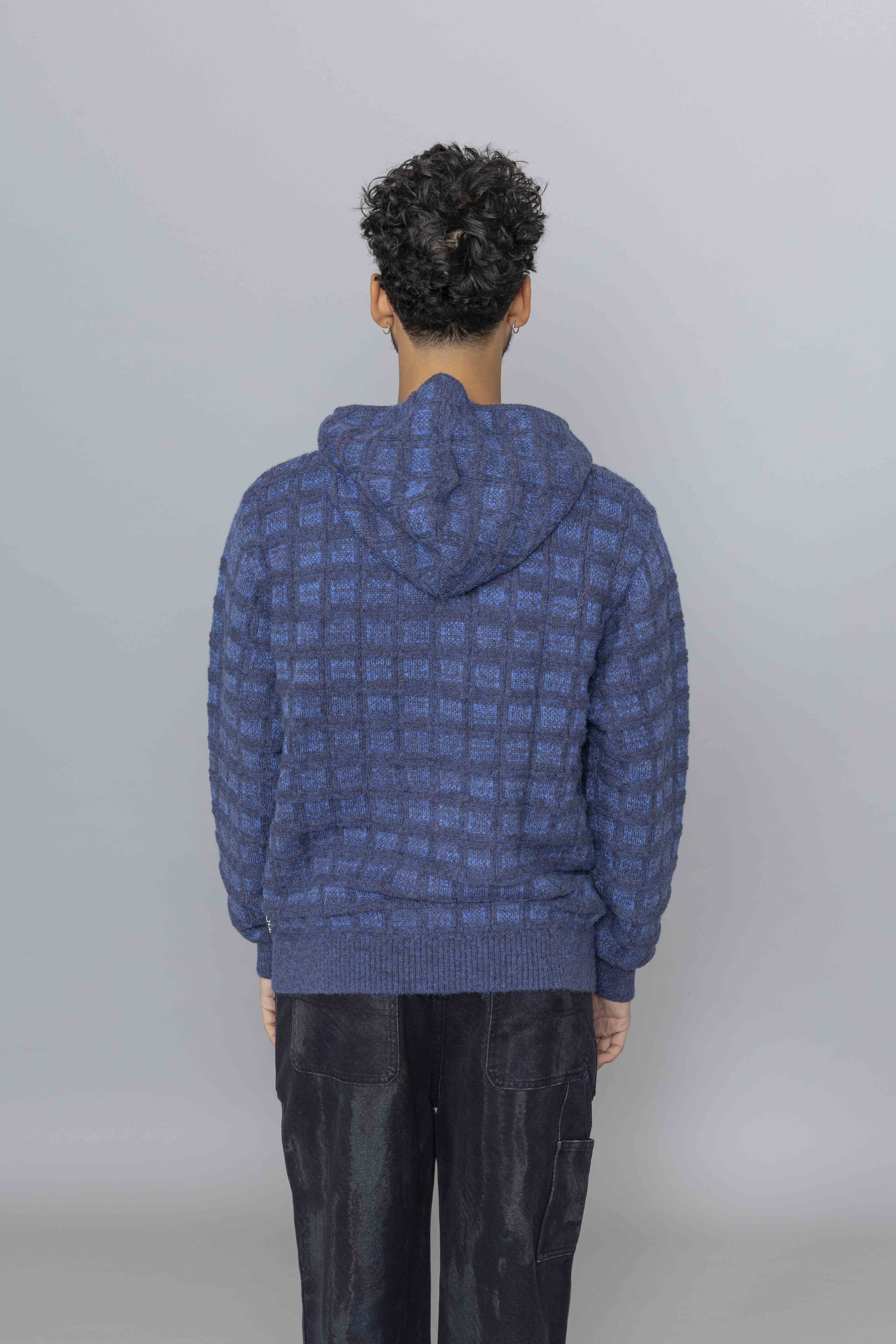 Textured Knit Zip Hoodie Navy