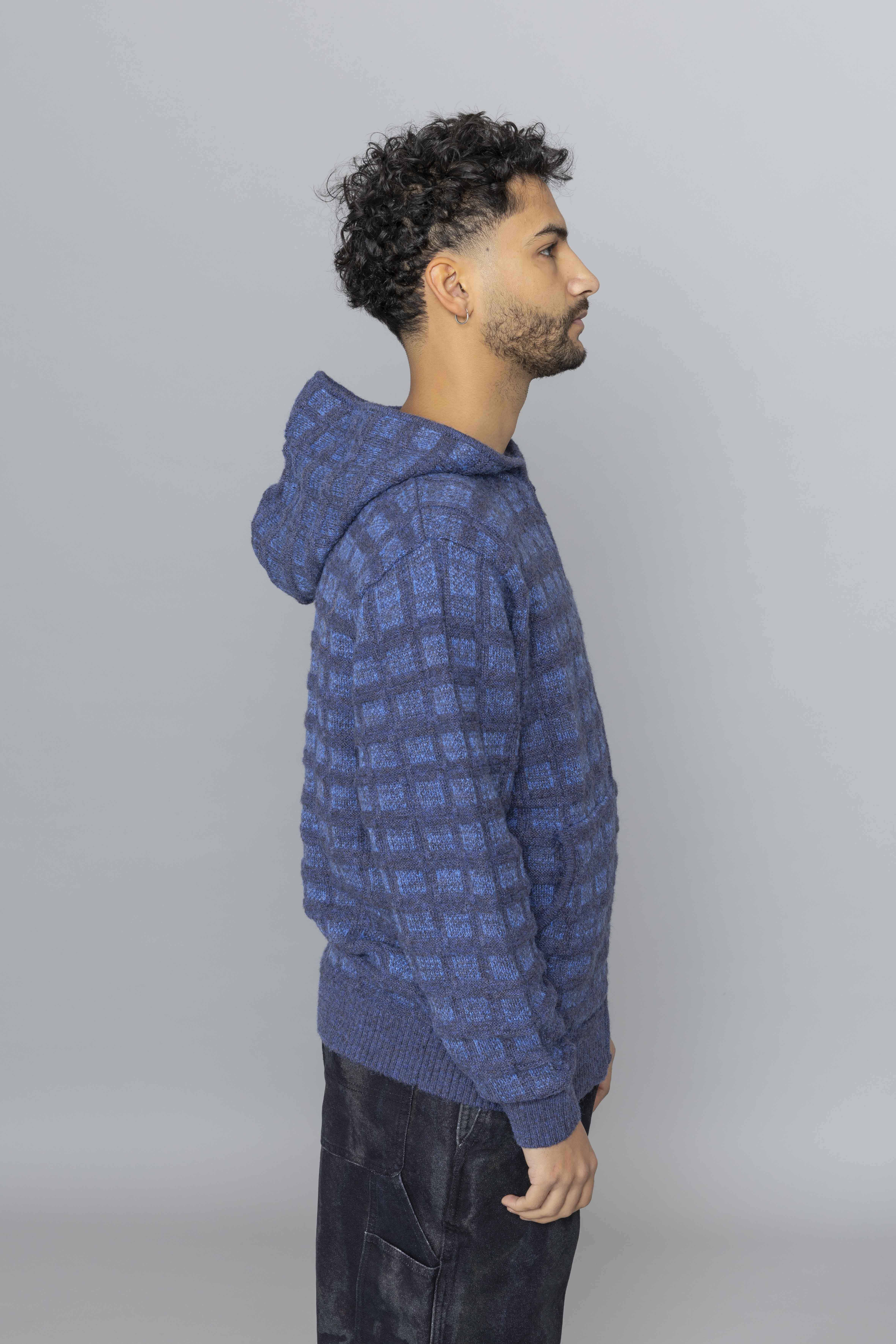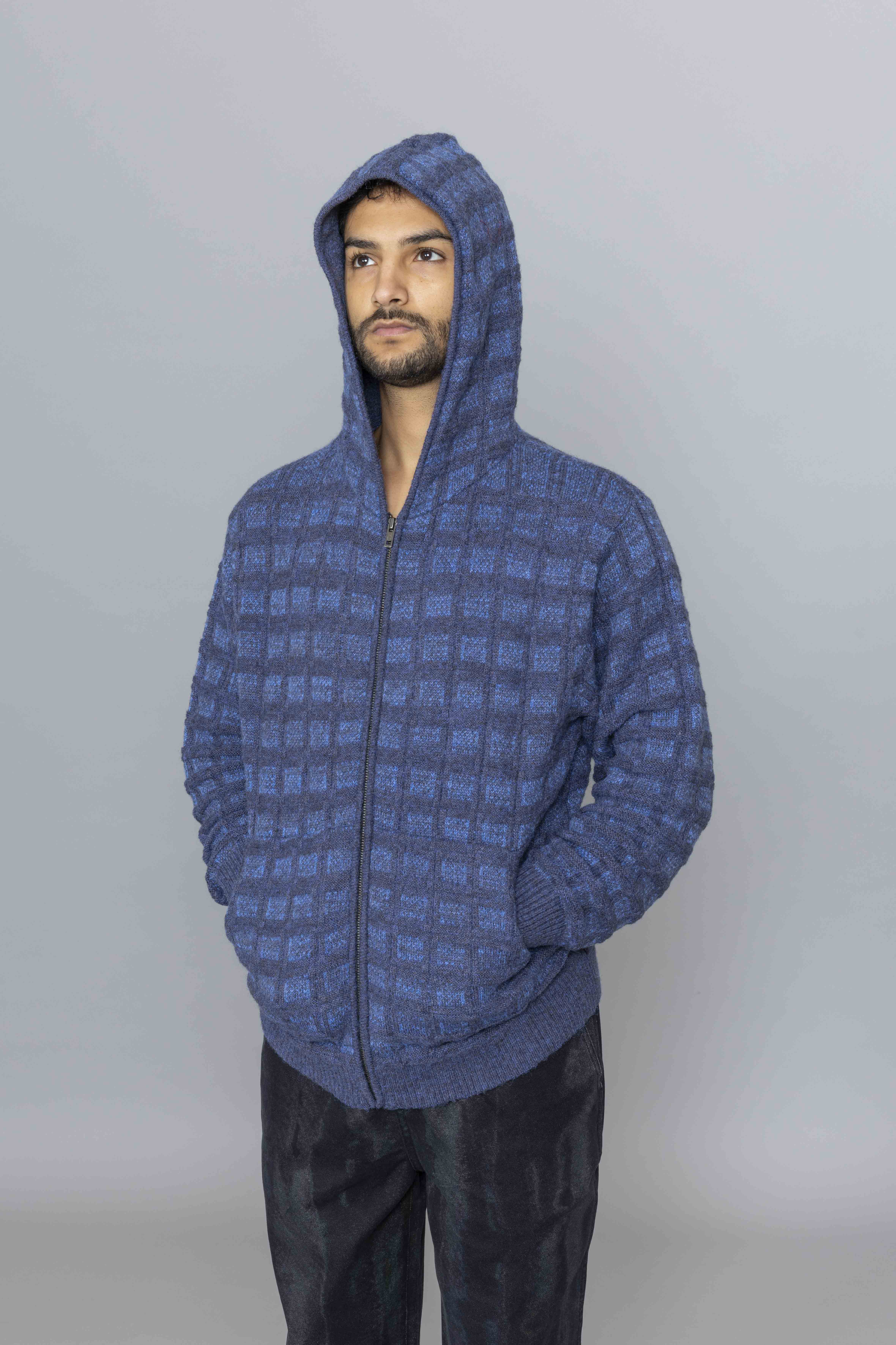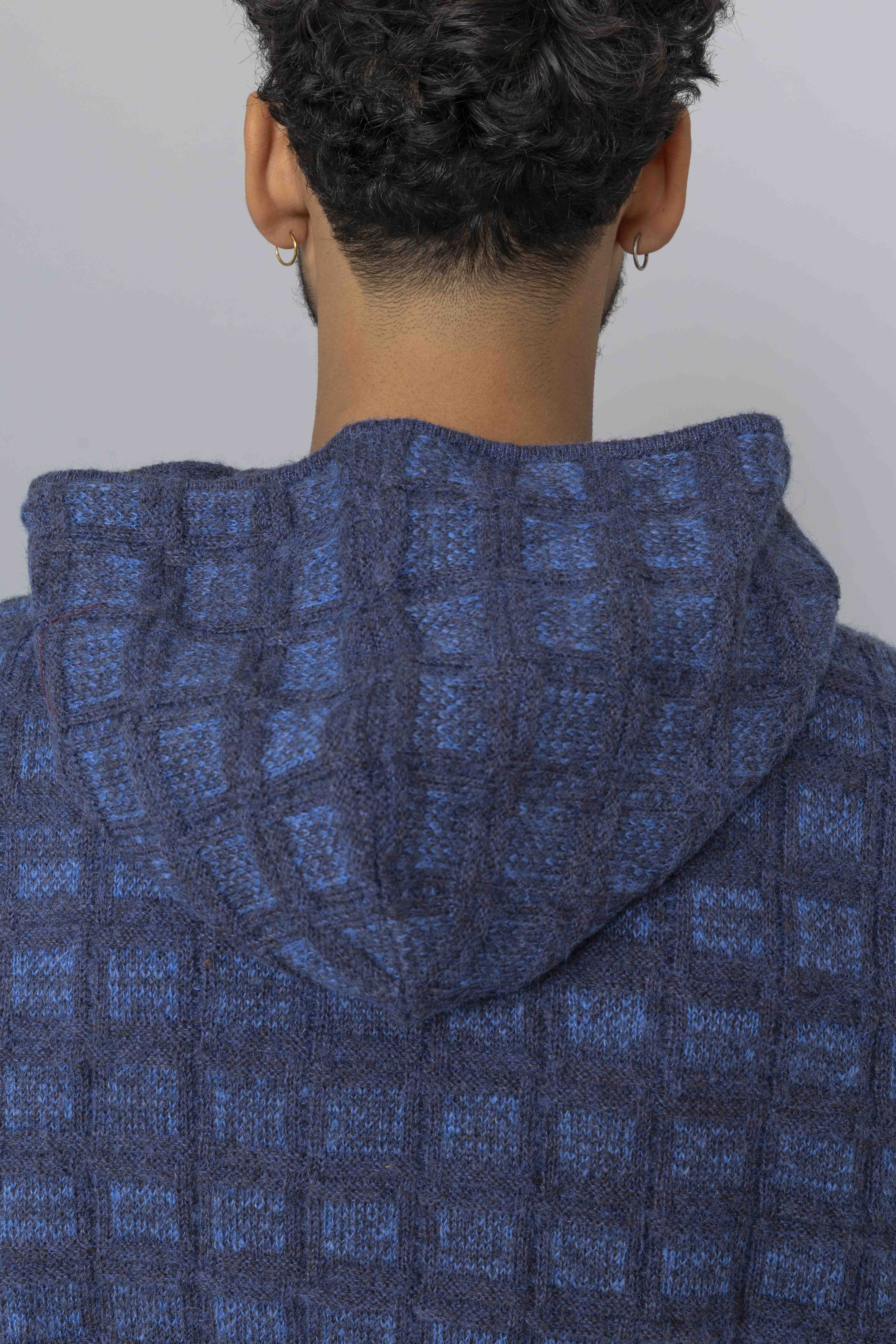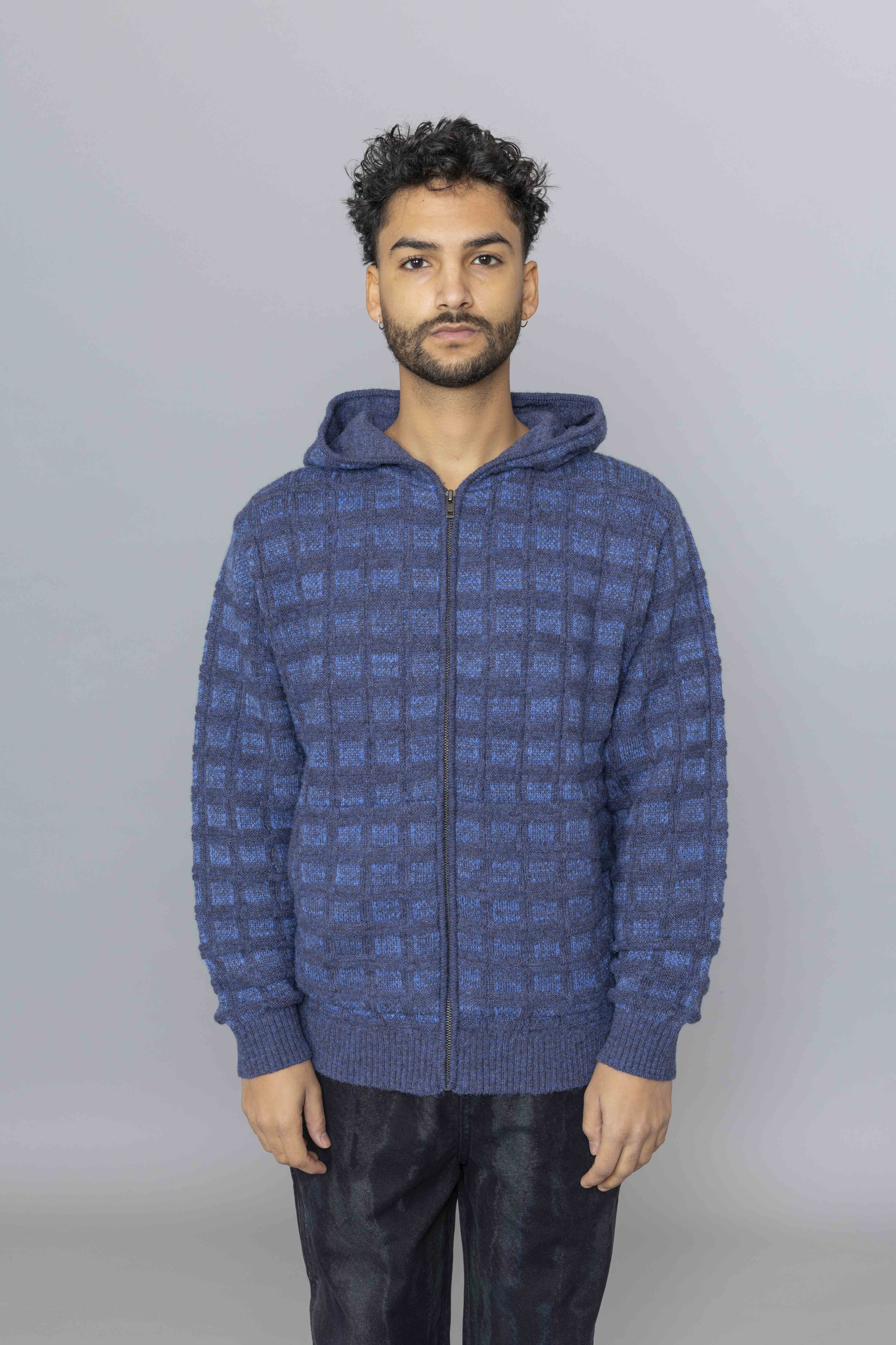 Textured Knit Zip Hoodie Navy